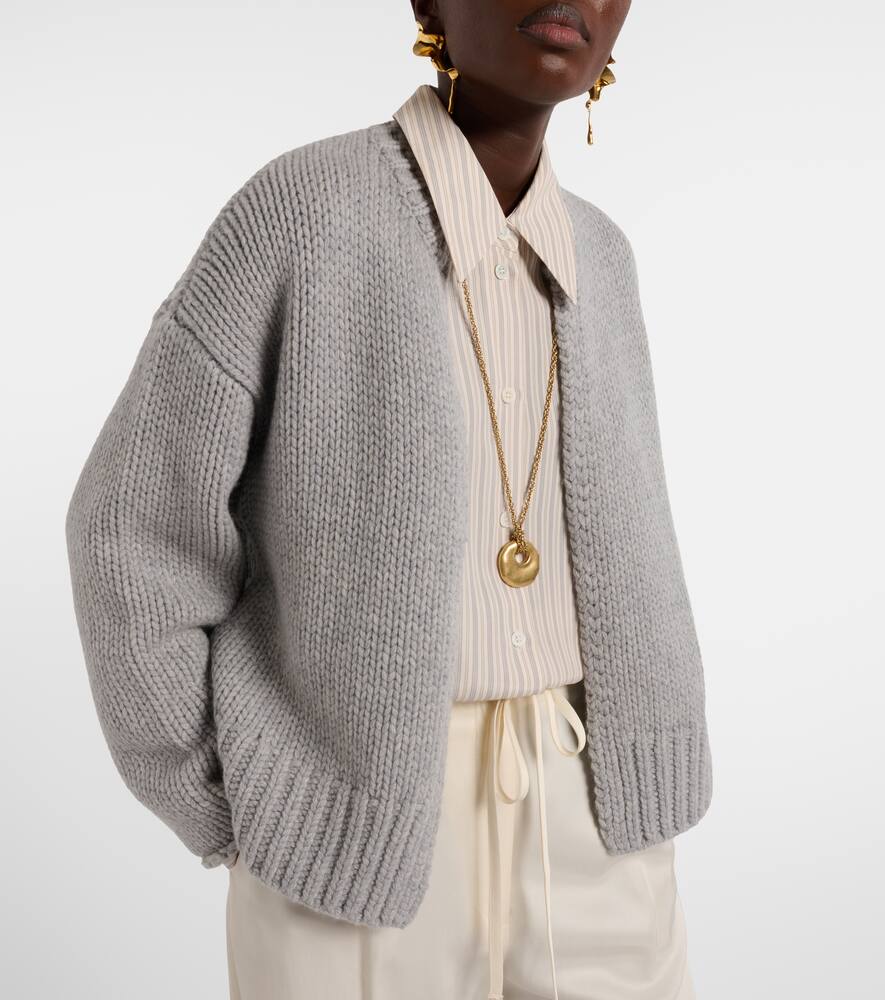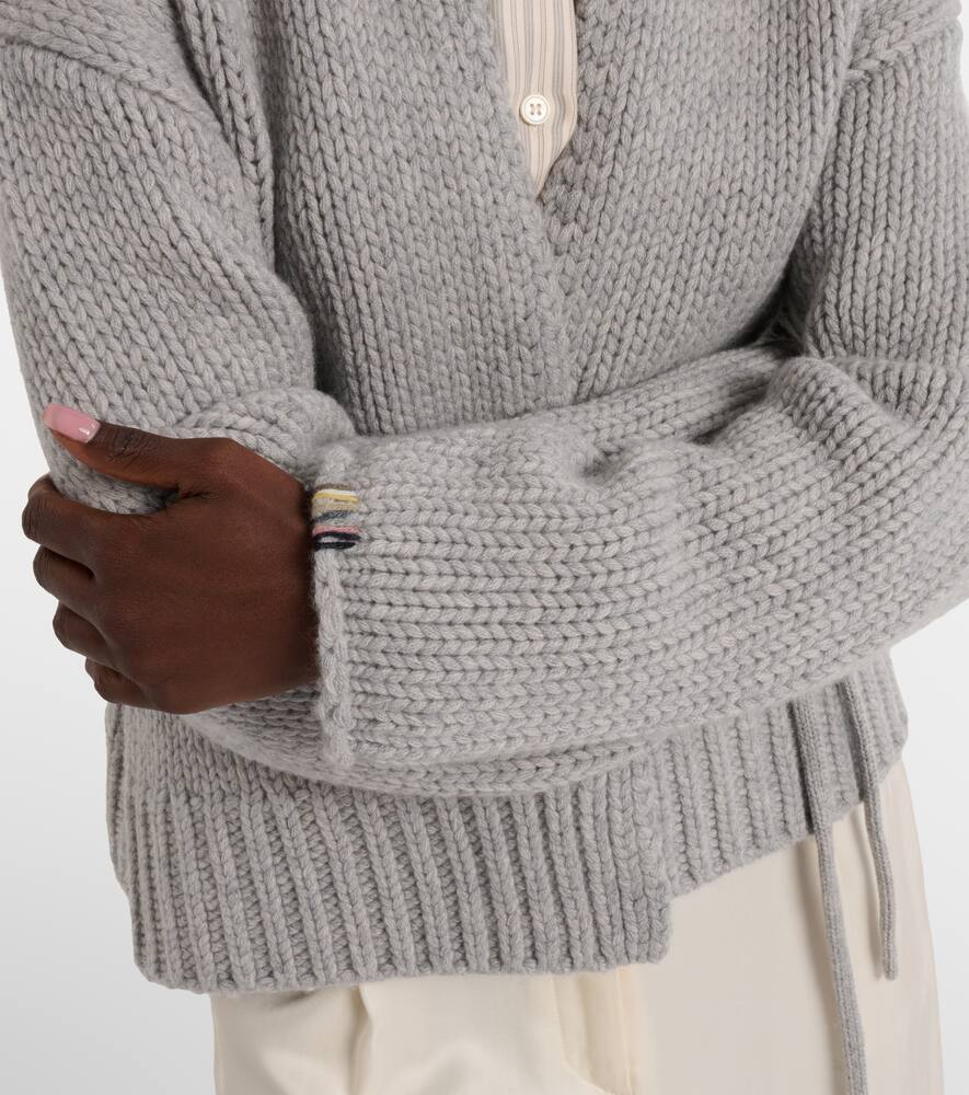 Extreme Cashmere использует пряжу, давшую название его имени, от монгольских коз, известных своей невероятно мягкой и эластичной шерстью. Кардиган Ginza связан из чистого кашемира с поясом, завязывающимся на резинке, для создания эффекта стягивания.