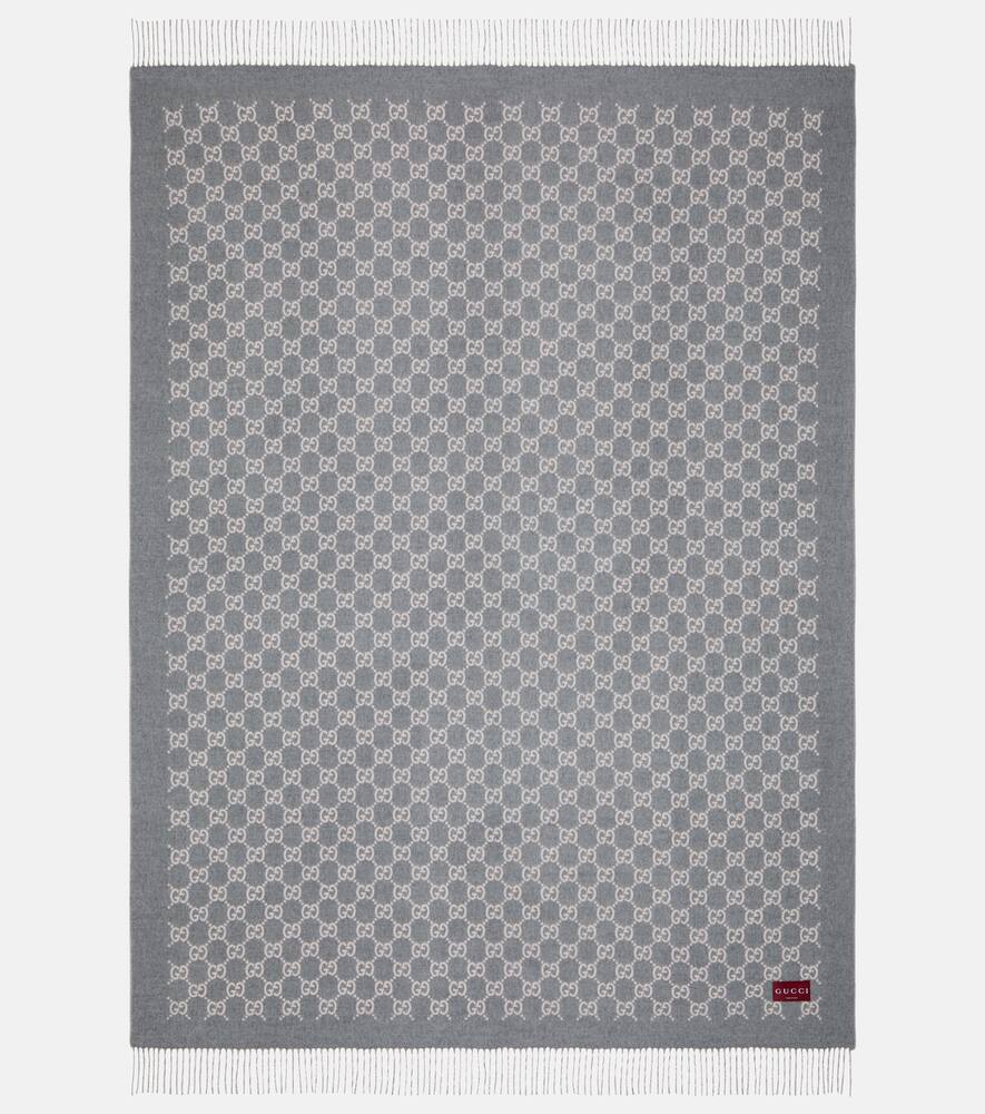 Предлагая новый подход к любимым домашним кодам, Gucci добавит изысканности вашему домашнему текстилю. Это одеяло из серой шерсти и кашемира с узором GG обеспечит уют и стильный отдых.