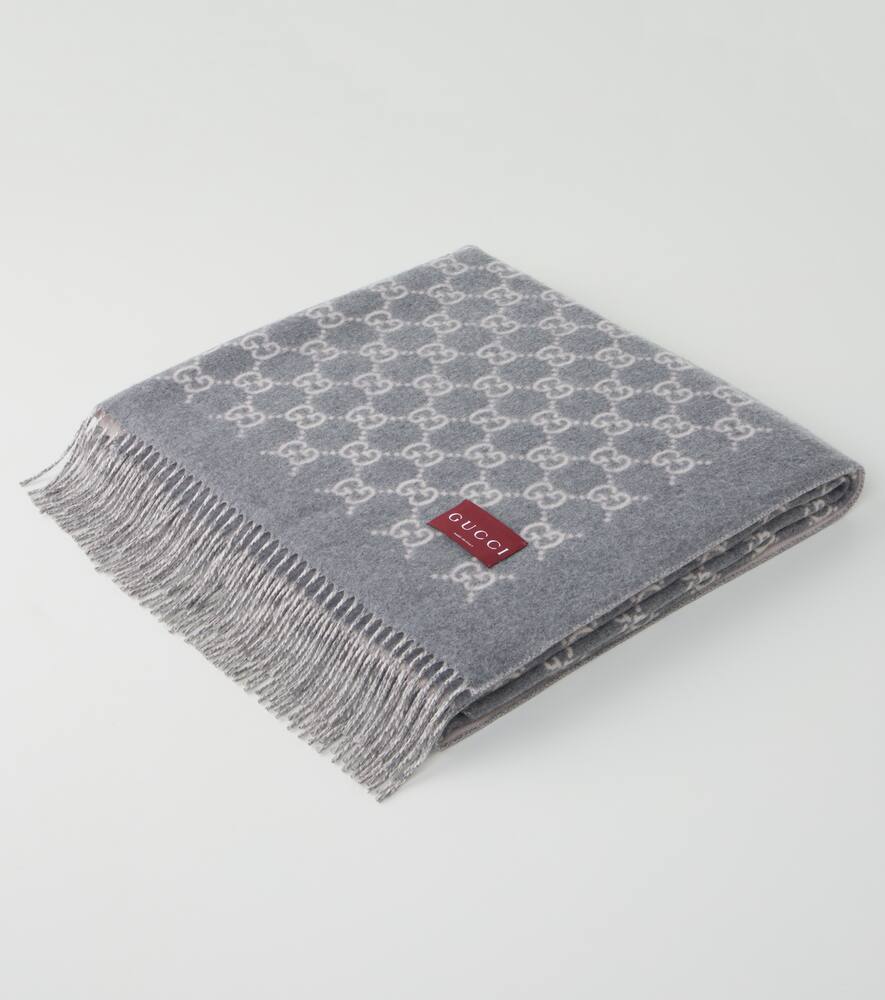 Плед GG из шерсти и кашемира Gucci, Grey/Pink