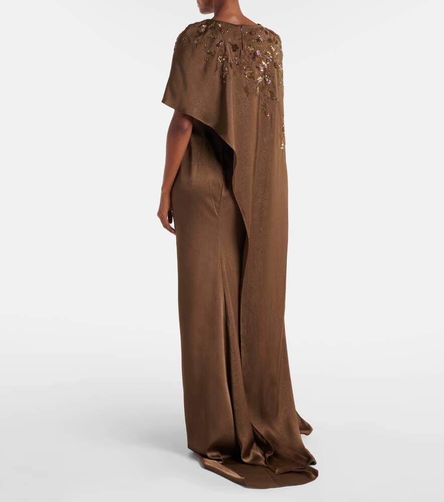Модели Marmar Halim идеально подходят для незабываемых выходов на торжественных мероприятиях и оставляют неизгладимое впечатление. Это платье имеет эффектный силуэт с драпированной накидкой и сверкающей отделкой на вырезе.