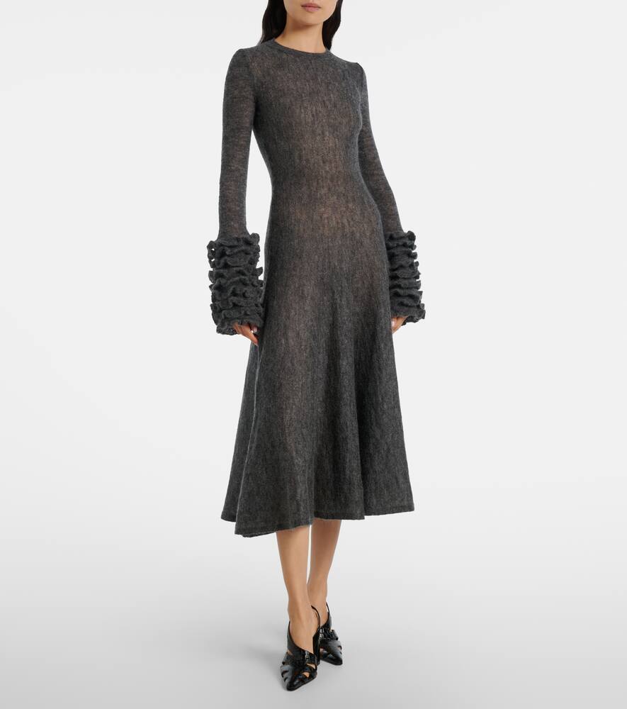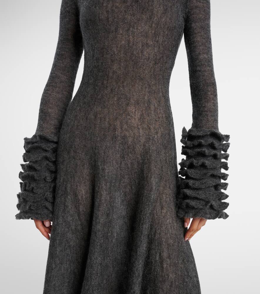 Платье миди из мохера и шерсти с рюшами Alaïa, Gris