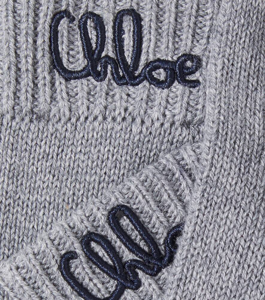 Вышитые перчатки из хлопка и шерсти Chloé Kids, Gris