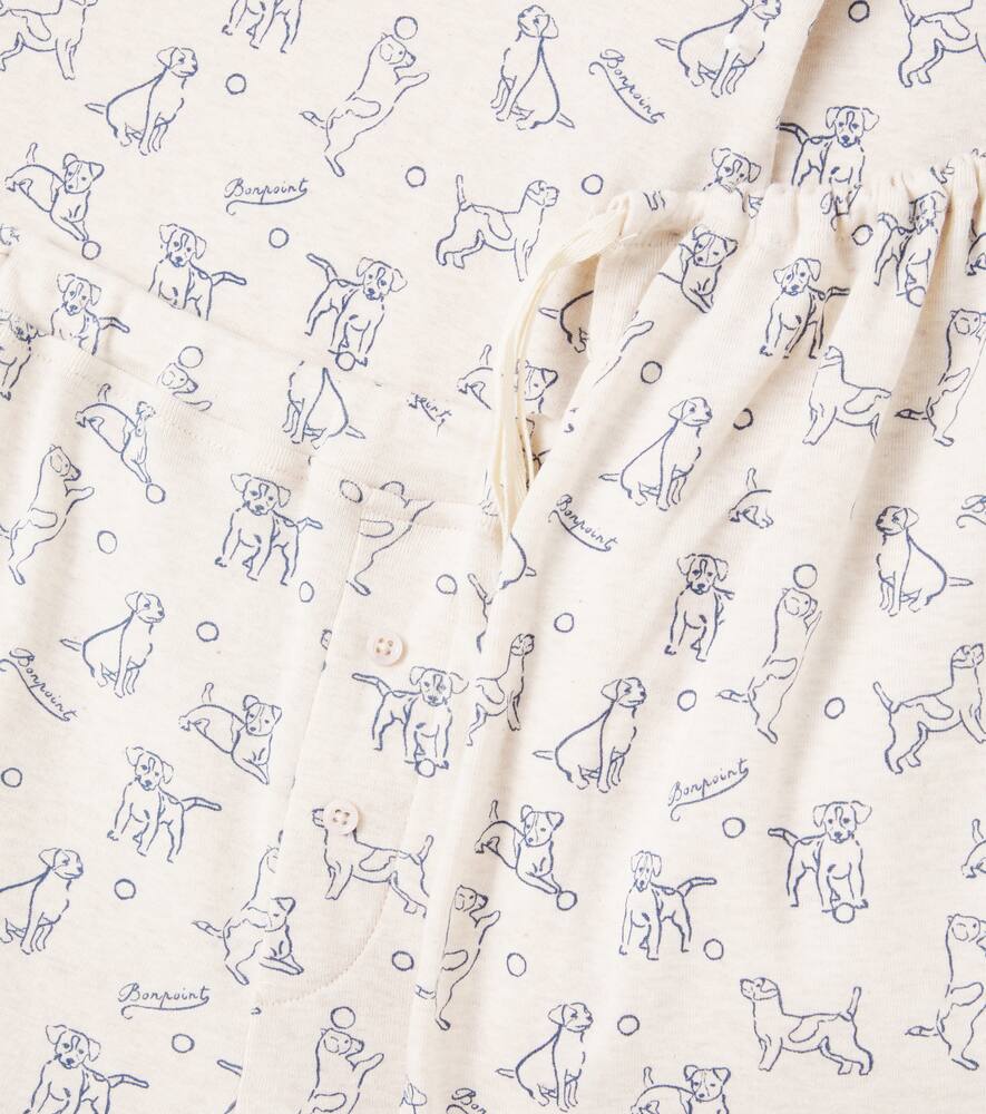 Позаботьтесь о комфорте своего малыша в пижаме Planet от Bonpoint. Этот комплект из хлопка, топа и штанишек, украшен очаровательным принтом в виде собак по всей длине, имеет круглый вырез горловины и эластичный пояс для удобной посадки.