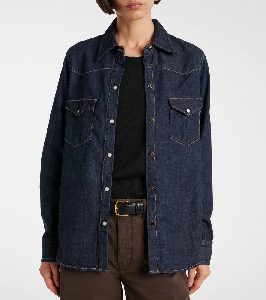 Нили Лотан придаёт джинсовой рубашке Travis нотки вестерна. Эта модель выполнена в классическом цвете и отличается контрастной отстрочкой.