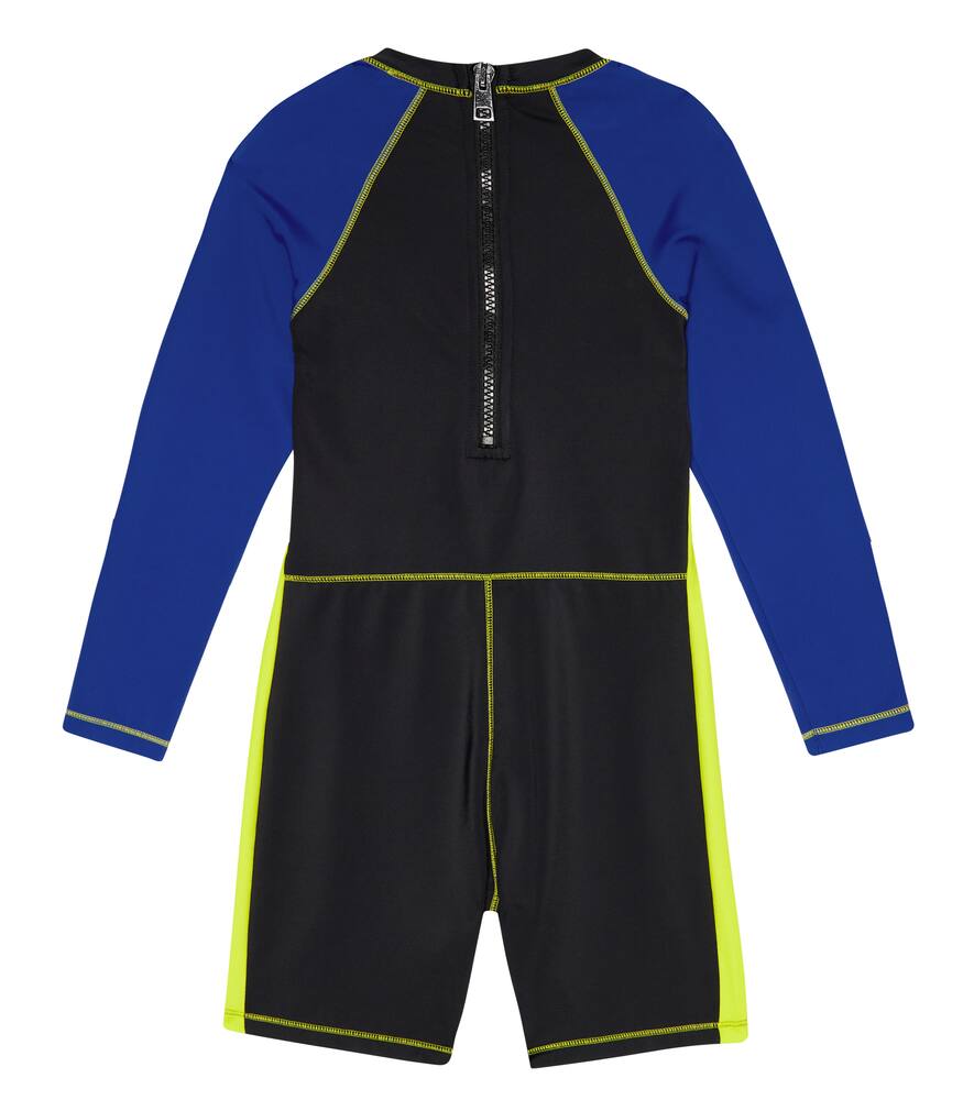 Защитите своего малыша от вредного ультрафиолетового излучения с этим купальником-рашгардом с длинными рукавами от Versace Kids. Он изготовлен из мягкой ткани для плавания, украшен забавным принтом на груди и застежкой-молнией сзади.