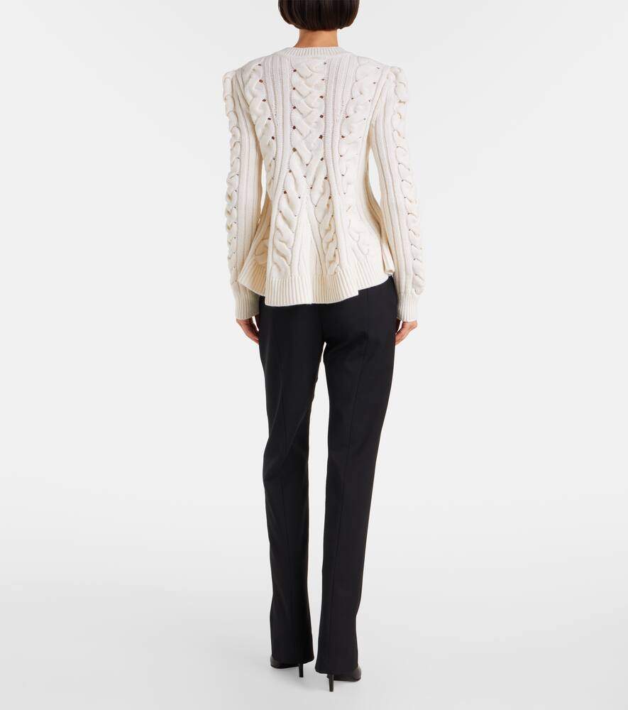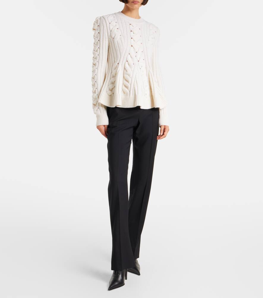 Этот свитер McQueen, изготовленный в Италии из шерсти и кашемира, отличается классическим узором косичек. Он отличается силуэтом пеплум, круглым вырезом и отделкой в рубчик.