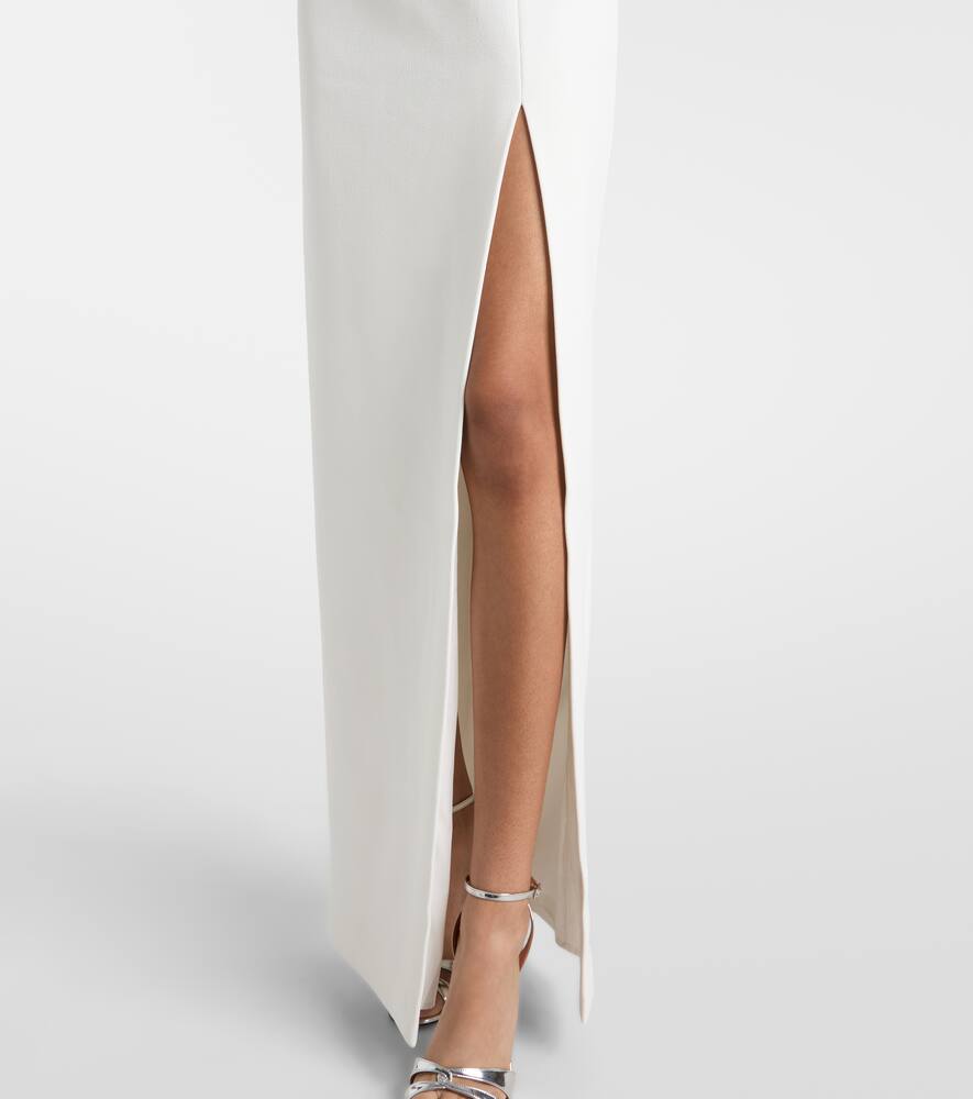 Каждый наряд от Rebecca Vallance отличается блеском и гламуром. Яркий пример — свадебное платье Amery с высоким разрезом спереди до бедра и ослепительной отделкой на лифе, рукавах-буфах и воротнике.