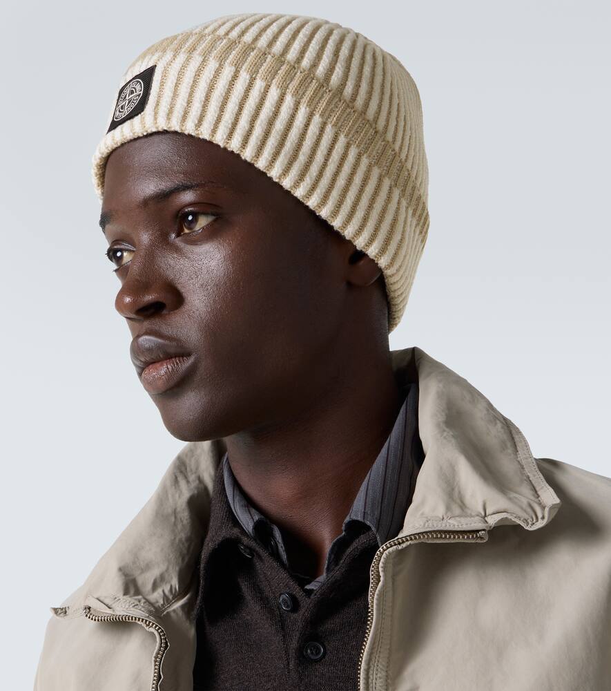Ребристая вязаная шапка-бини Compass Stone Island, Ivory
