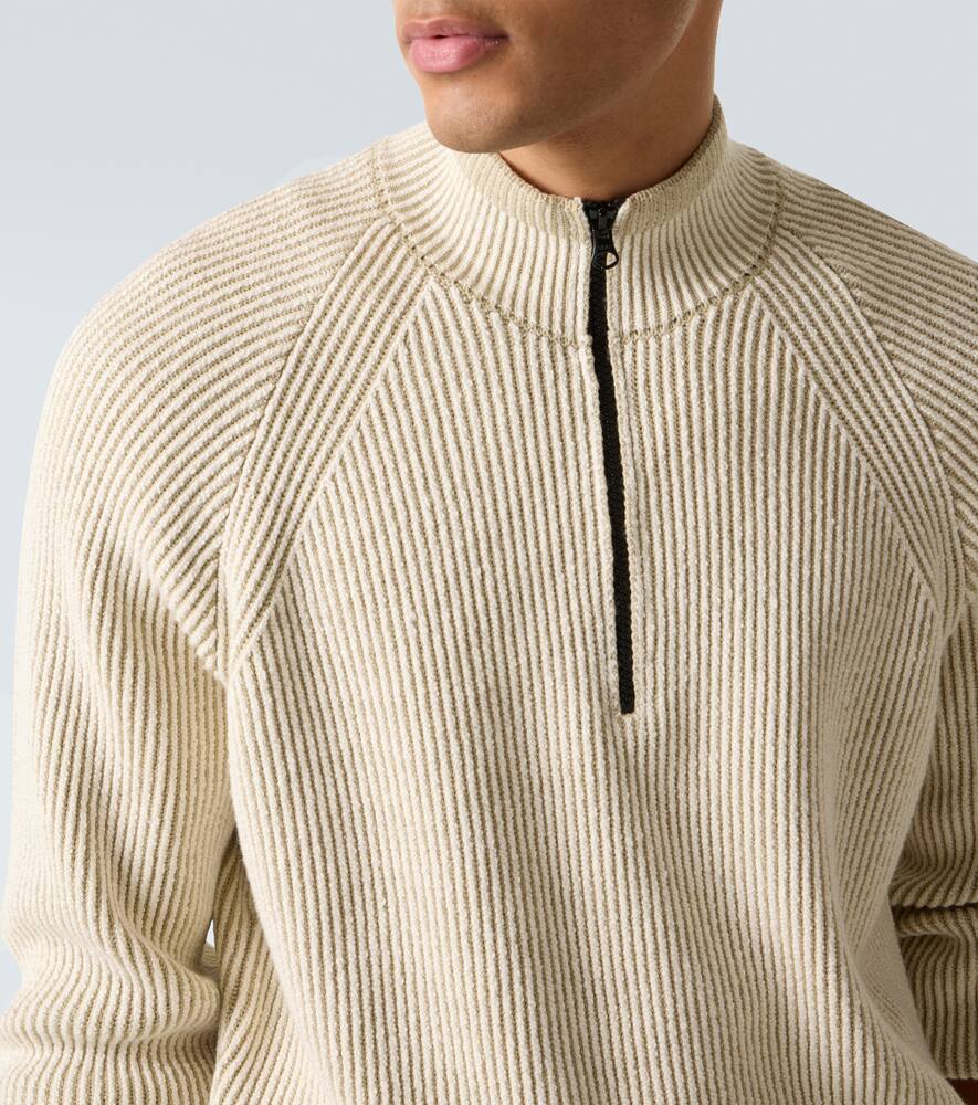 Этот свитер Stone Island выполнен из смеси шерсти и хлопка в рубчик, дополнен отделкой в рубчик и частично застегивающейся молнией спереди. На рукаве изделия красуется фирменный значок бренда — компас.