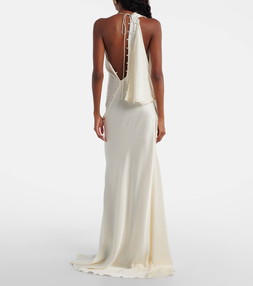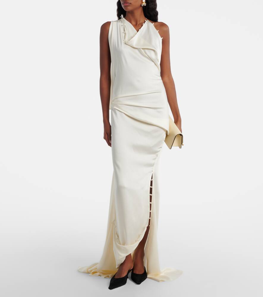 Трудно найти бренд, более ассоциирующийся с непринужденной изысканностью, чем Victoria Beckham. Это платье длиной в пол из струящегося креп-сатина украшено искусной драпировкой на вырезе, лифе и бедрах.