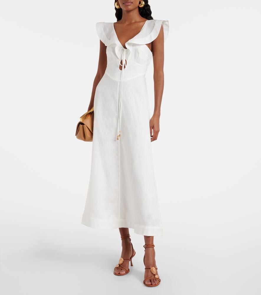 Платье миди Rhiannon с рюшами из льна Zimmermann, Ivory