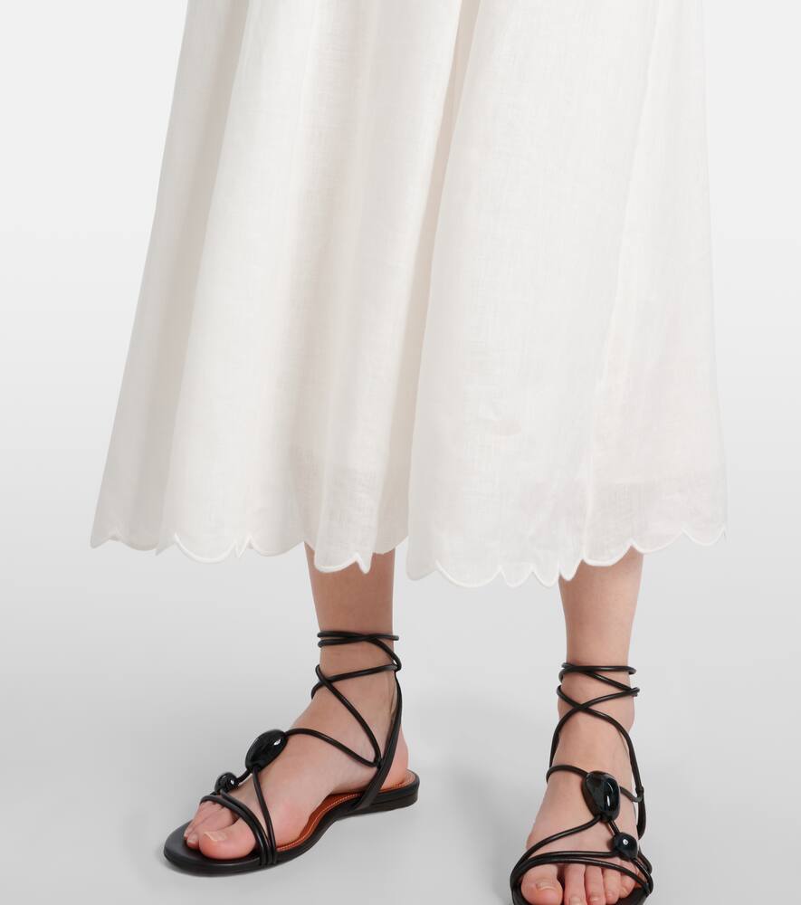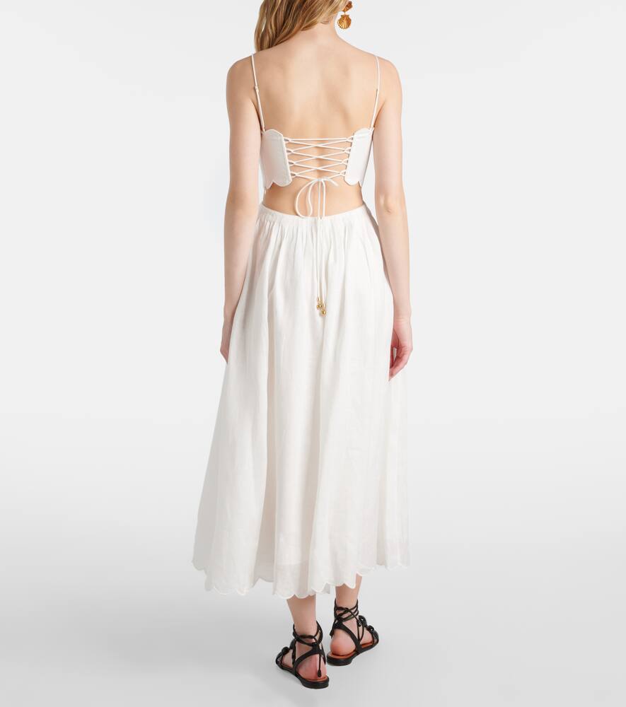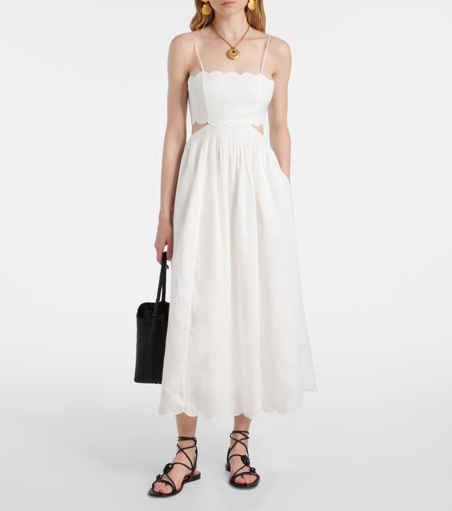 Платье миди Rhiannon с фигурным краем из льна Zimmermann, Ivory