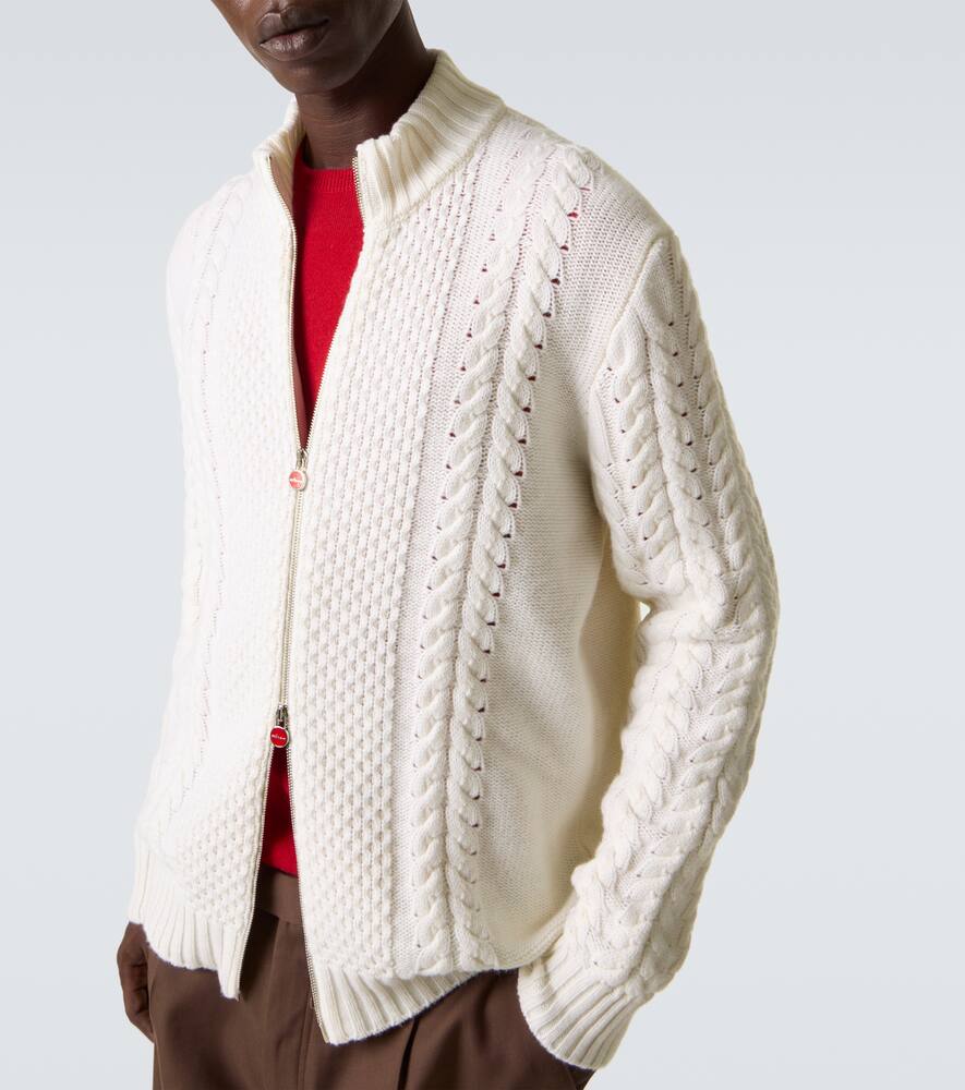 Кашемировый кардиган с косой вязкой Kiton, Ivory White
