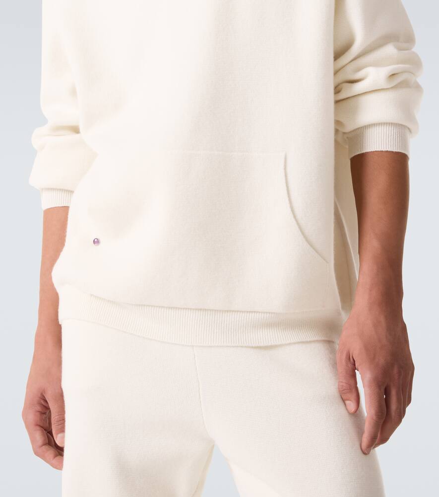 Каждая рубашка God's True Cashmere украшена вручную вырезанными драгоценными камнями на планке, карманах и манжетах, тщательно отобранными за их положительные качества. Эта толстовка с капюшоном выполнена из чистого кашемира с отделкой в рубчик и аметистовым декором.