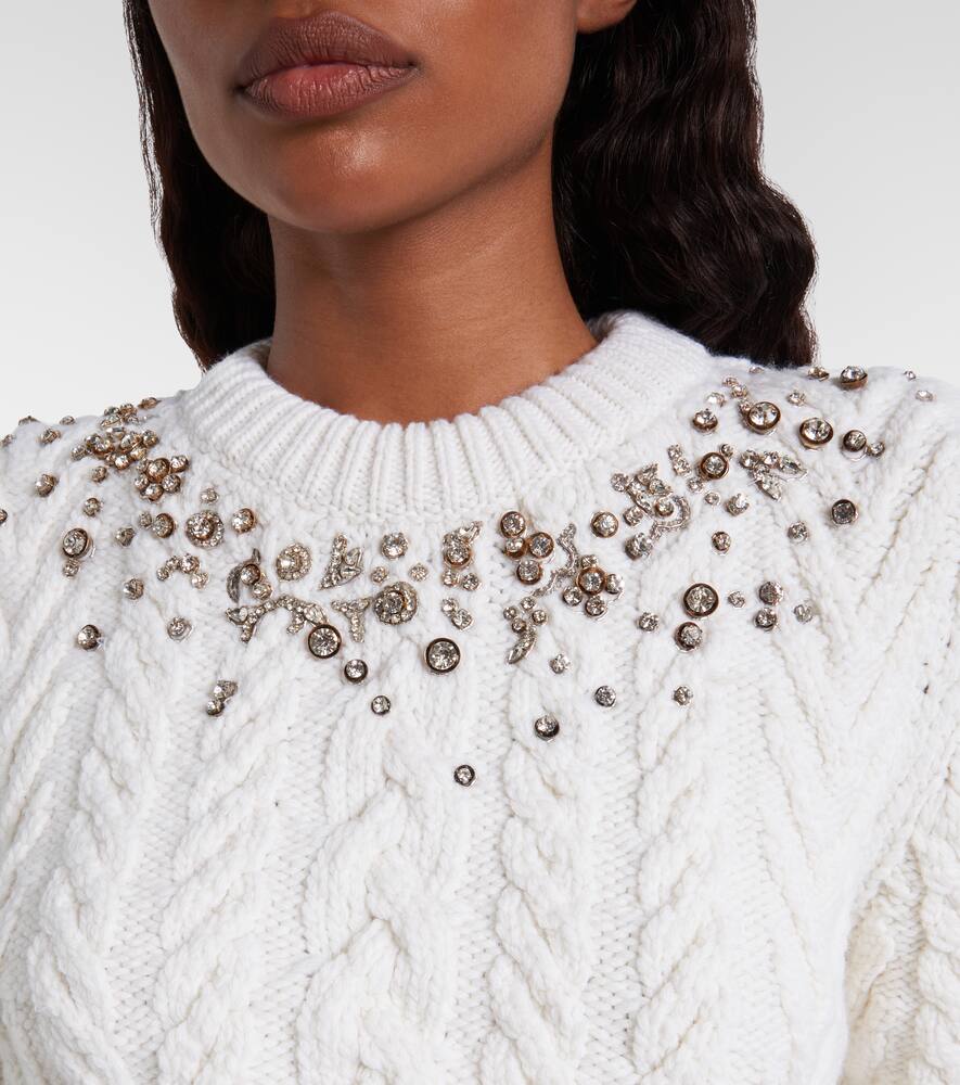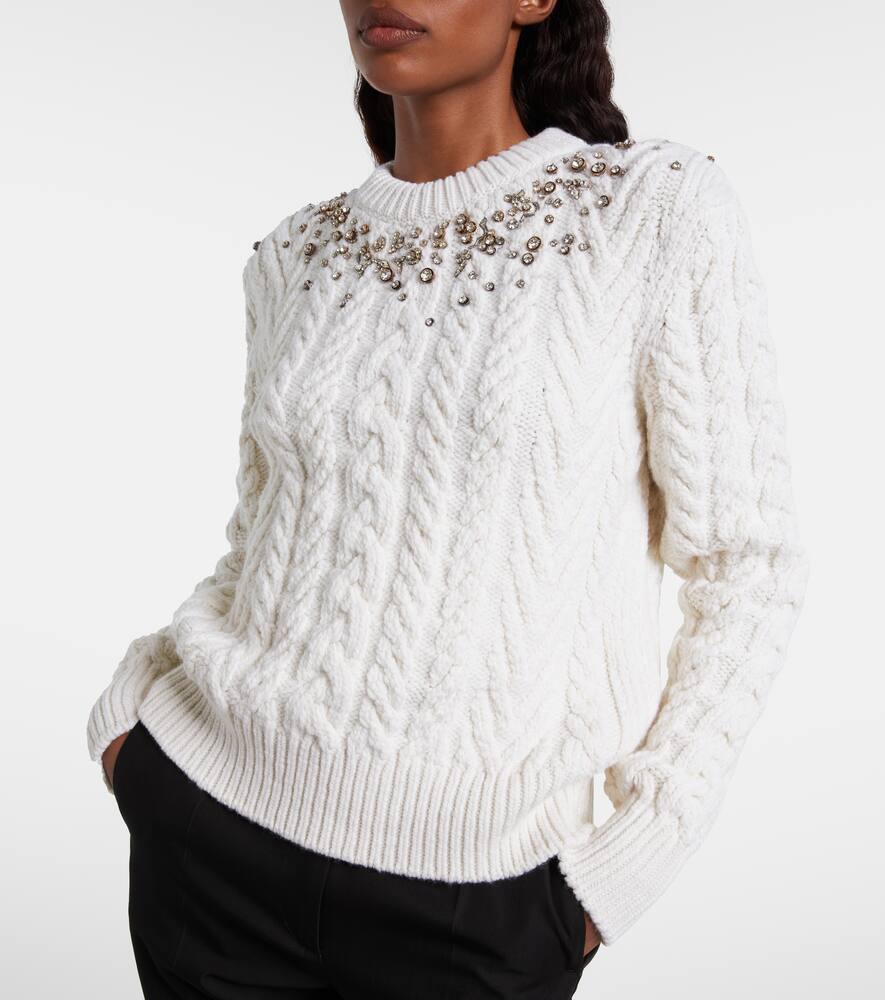 Свитер из шерсти и кашемира с декором McQueen, Ivory/Crystal 191 099₽
