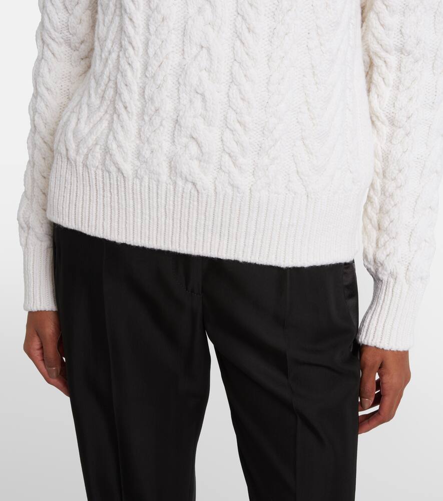 Обратите внимание на искусно выполненные базовые модели от McQueen, которые притягивают взгляд. Этот свитер косой вязки, выполненный из роскошной смеси шерсти и кашемира, украшен ослепительными кристаллами на вырезе.