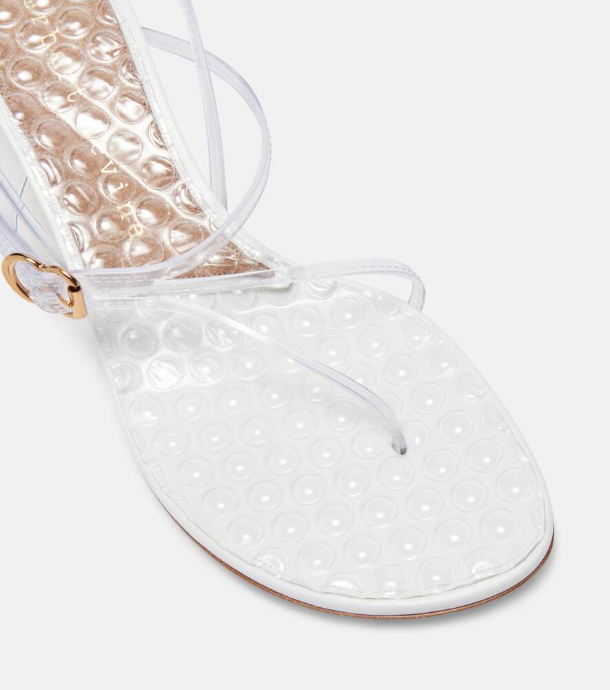 Босоножки Starry-eyed Jelly от Herbert Levine с прозрачным резиновым верхом и золотистыми пряжками. Изготовленные в Италии, они оснащены деревянным каблуком высотой 55 мм и круглым открытым носком.