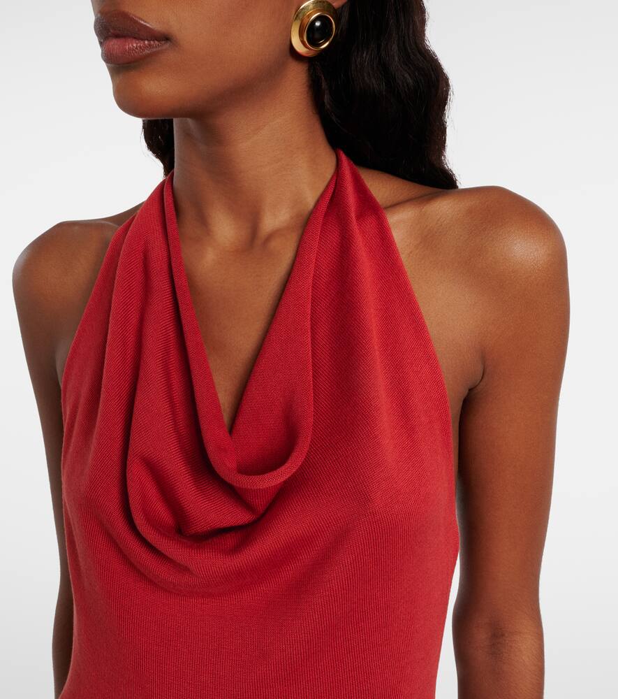 Бренд Aya Muse, созданный в Лос-Анджелесе, зарекомендовал себя как место, где можно найти стильные базовые вещи и вдохновляющие вечерние наряды. Это платье из шёлкового джерси имеет приталенный силуэт, воротник-хомут и шарфик, придающий ему дополнительную элегантность.