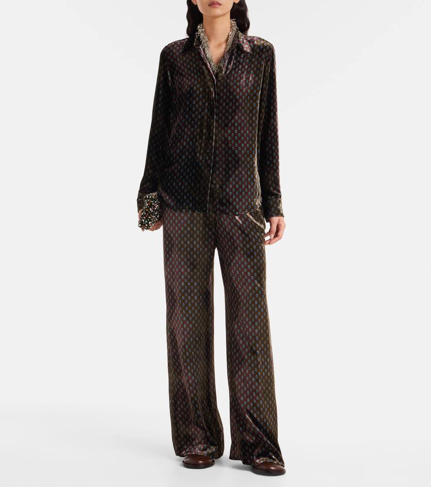 Широкие брюки из сатина с принтом Dries Van Noten, Khaki