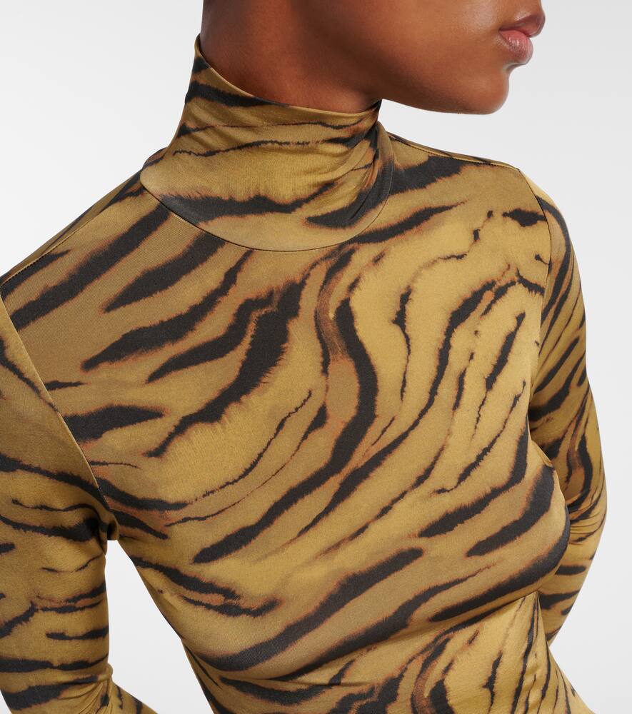Копенгагенский бренд Ganni переосмысливает понятие скандинавского стиля благодаря своему причудливому и игривому подходу к дизайну. Этот трикотажный топ с ярким тигровым принтом по всей поверхности, длинными рукавами и водолазкой.
