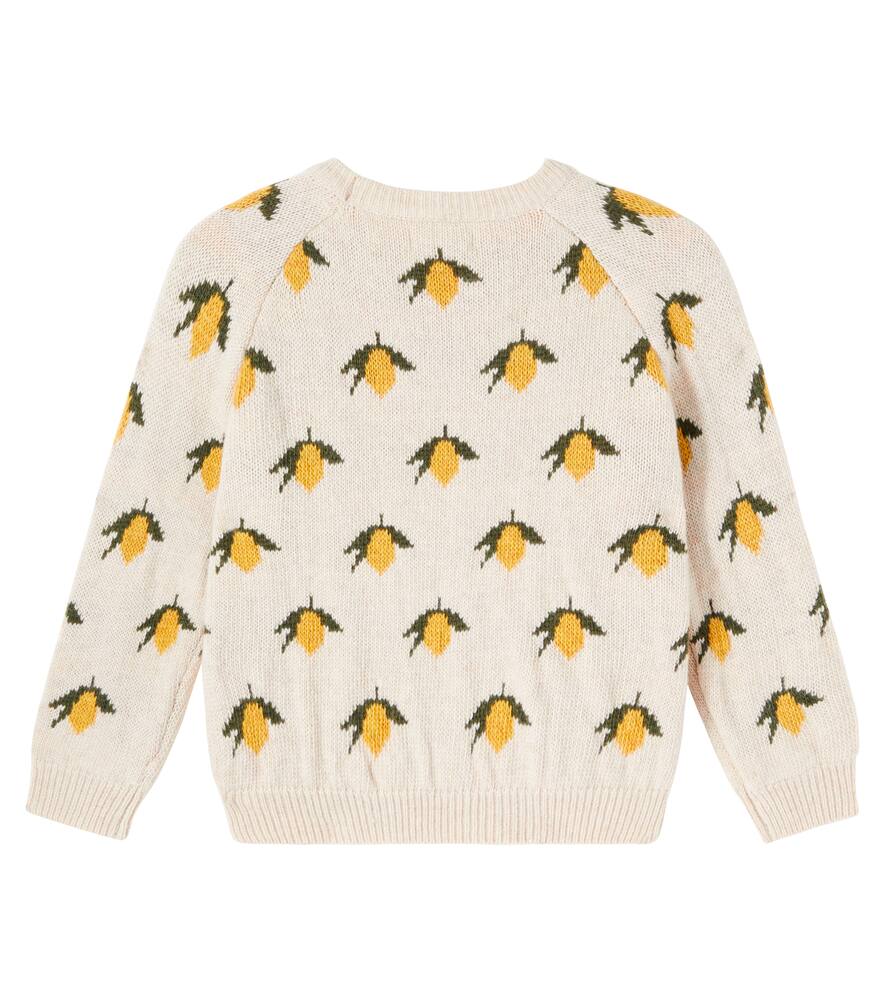 Маленьким ценителям вкуса понравятся бесконечно игривые модели от Konges Sløjd, тщательно продуманные для качества и комфорта в любую погоду. Свитер Belou украшен очаровательными лимонными мотивами в технике интарсии.