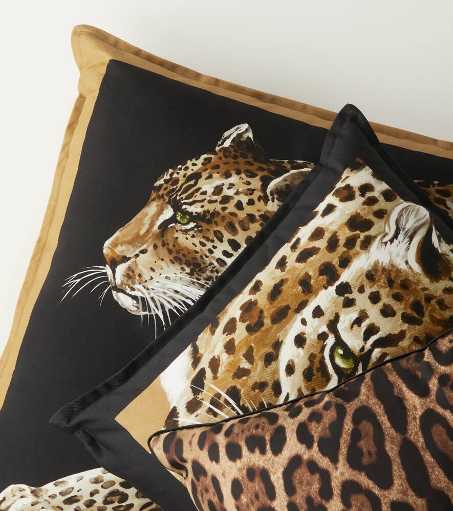 Вездесущий леопардовый принт, характерный для коллекций готовой одежды Dolce&Gabbana, находит свое отражение и в коллекции для дома итальянского бренда, где он представлен, например, на этой холщовой подушке. Эта щедро набитая подушка, являющаяся ярким выражением индивидуальности и очарования, выделяется изображением леопарда на своей поверхности – переосмыслением темы, встречающейся в платках из архива Dolce&Gabbana, – а гладкая черная кайма придает ей элегантный вид.