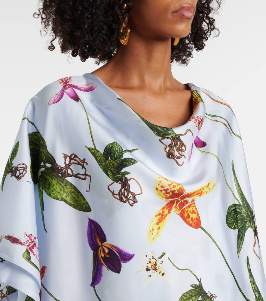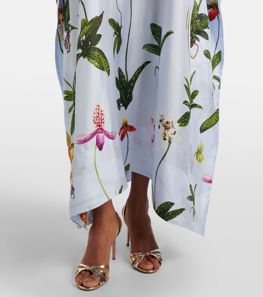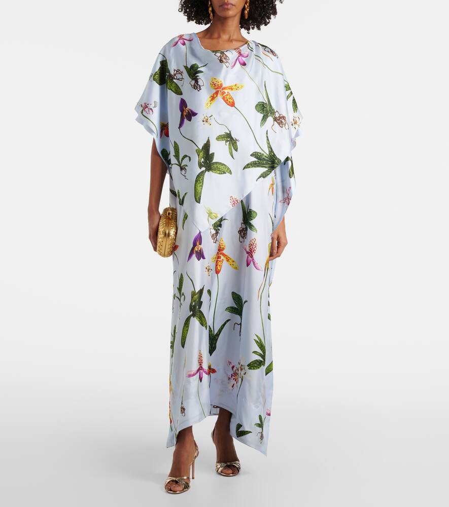 Флисовый шелковый кафтан с цветочным принтом Oscar de la Renta, Light Blue Mult