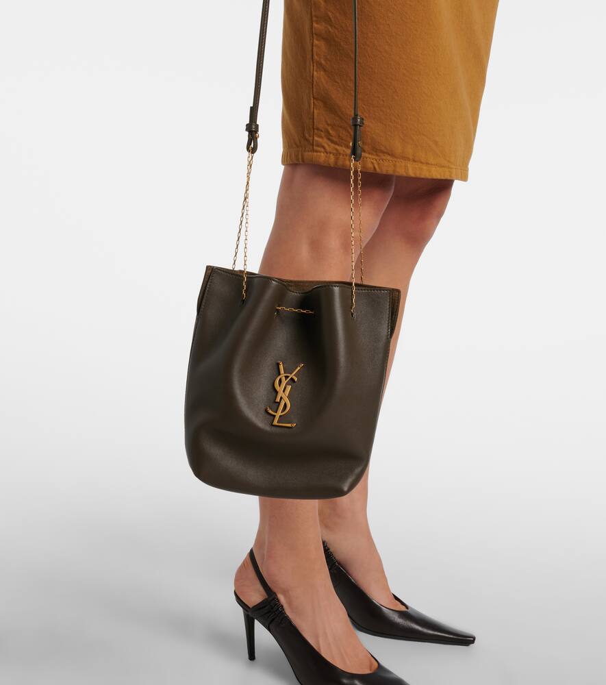 Изысканность — в сумке-ведре Pochon от Saint Laurent. Лёгкая модель подвешивается на цепочке и кожаном ремешке и украшена фирменной фурнитурой Cassandre спереди.