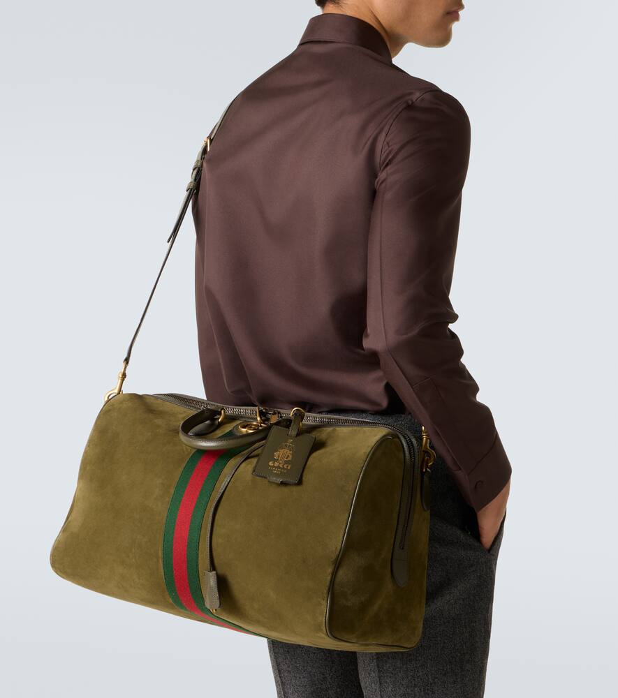 Путешествуйте стильно с дорожной сумкой Gucci Savoy Medium от Gucci. Универсальный дизайн, выполненный из мягкой замши, дополнен фирменной полосой Web Stripe, фурнитурой в виде двойной буквы G и съёмной биркой Liftboy.