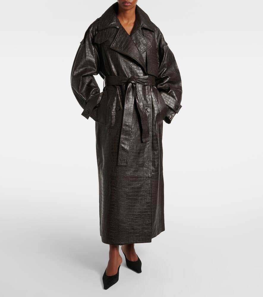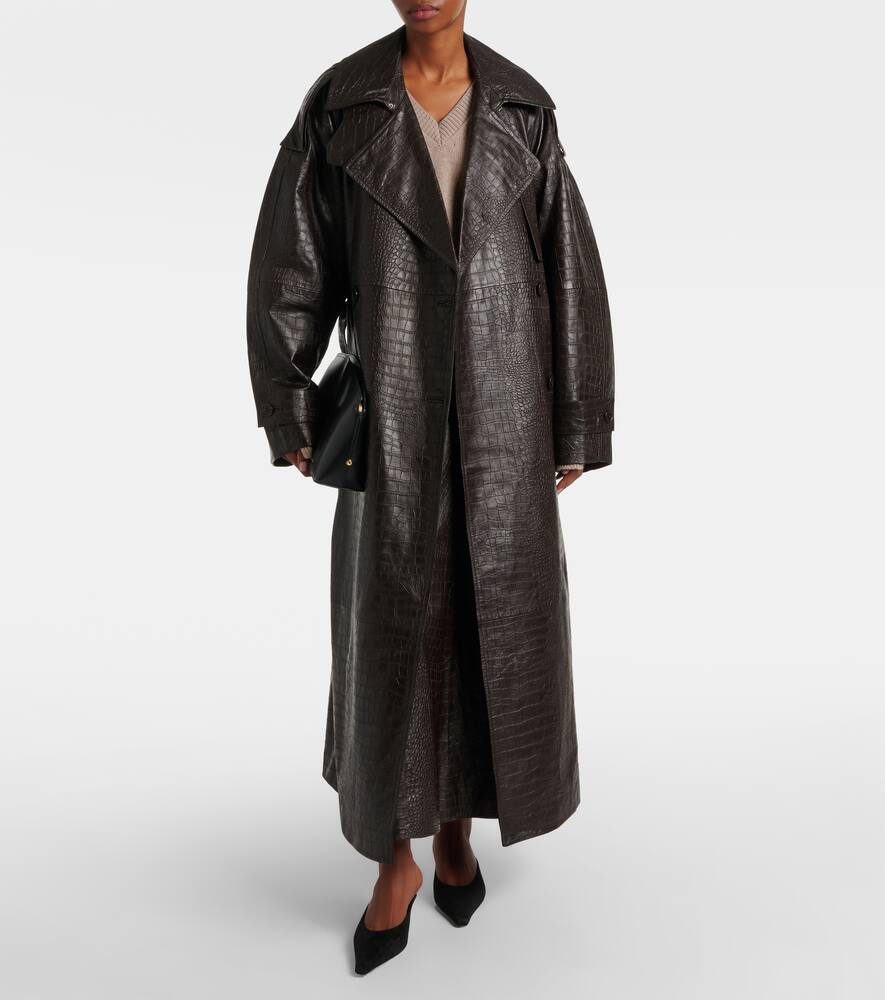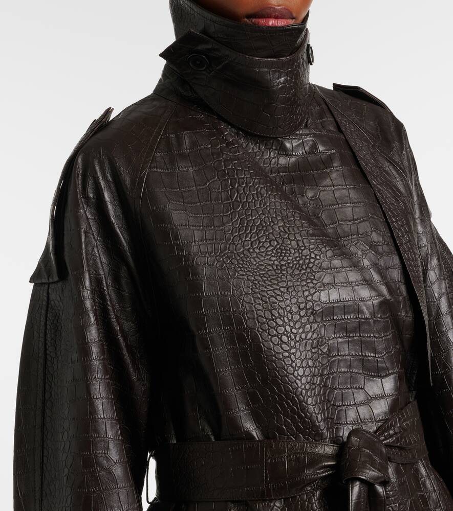 Тренч из кожи с эффектом крокодила Róhe, Mahogany