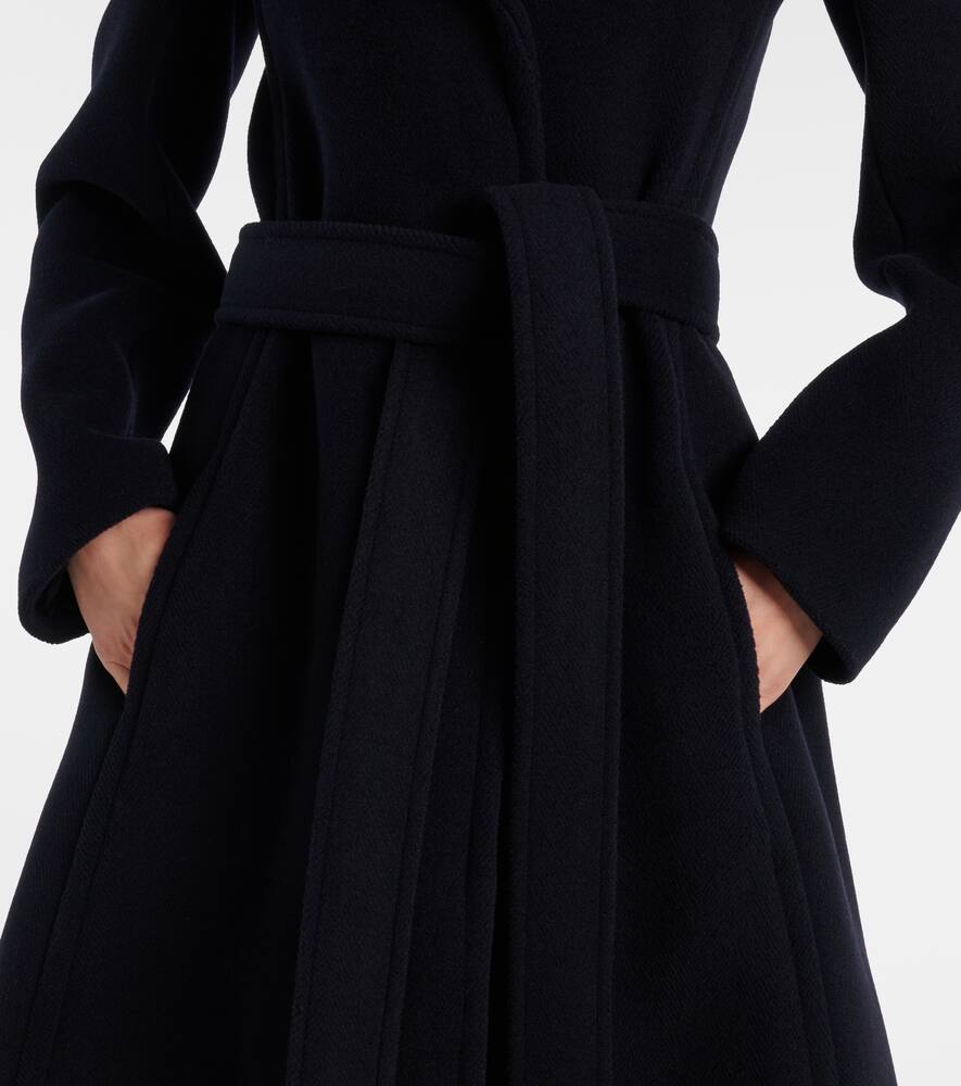 Продолжая наследие Аззедина Алайи, коллекции модного дома создают искусный баланс между скульптурностью и практичностью. Это тёмно-синее пальто, изготовленное в Италии из мягкой шерсти, имеет однобортный крой, съёмный пояс и прорезные карманы по бокам.