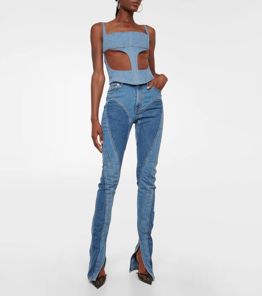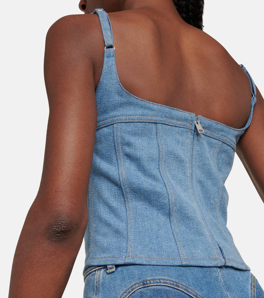 Джинсовый топ-корсет с сетчатыми вставками Mugler, Medium Blue/Nude 02