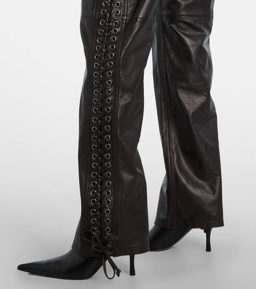 Заполните пробелы в вашем гардеробе для выхода в свет уникальными и гламурными моделями от Rotate. Эти прямые брюки выполнены из мягкой кожи наппа и дополнены шнуровкой по бокам.
