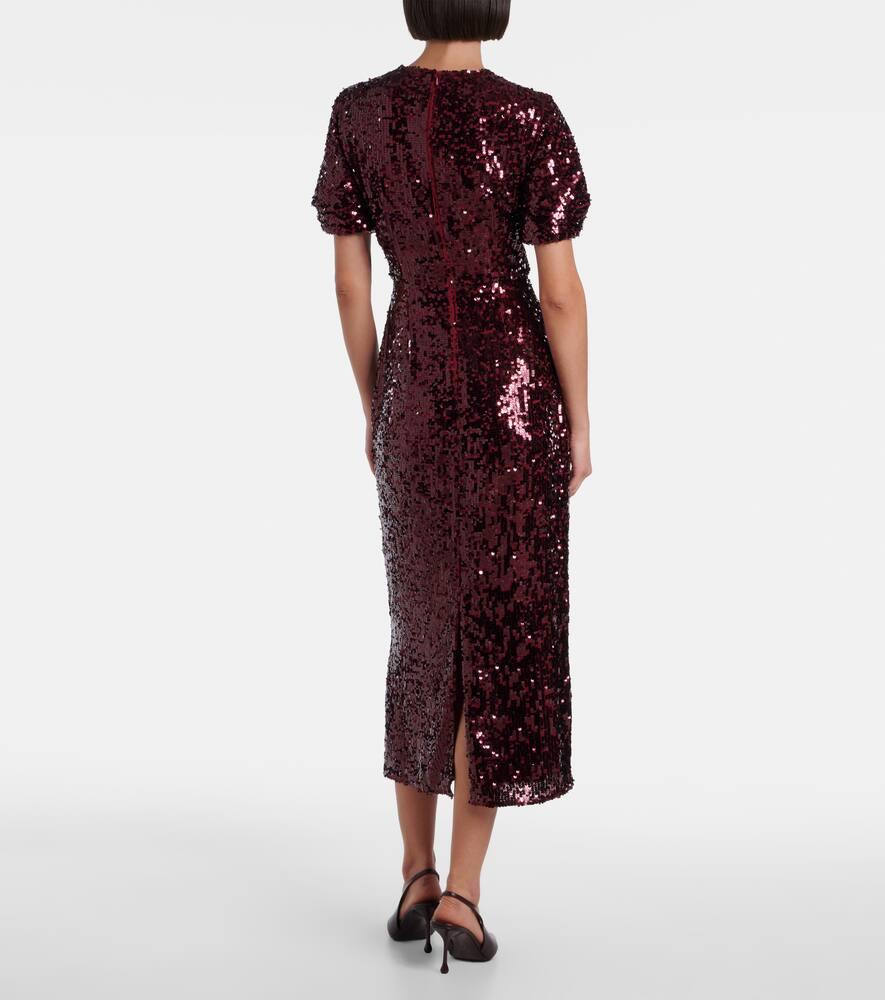 Добавьте нотку современной романтики в свой образ с причудливыми и изящными моделями Erdem. Это платье миди с короткими рукавами украшено пайетками по всей поверхности и отделкой из бисера на вырезе, что придаёт ему гламурный вид.