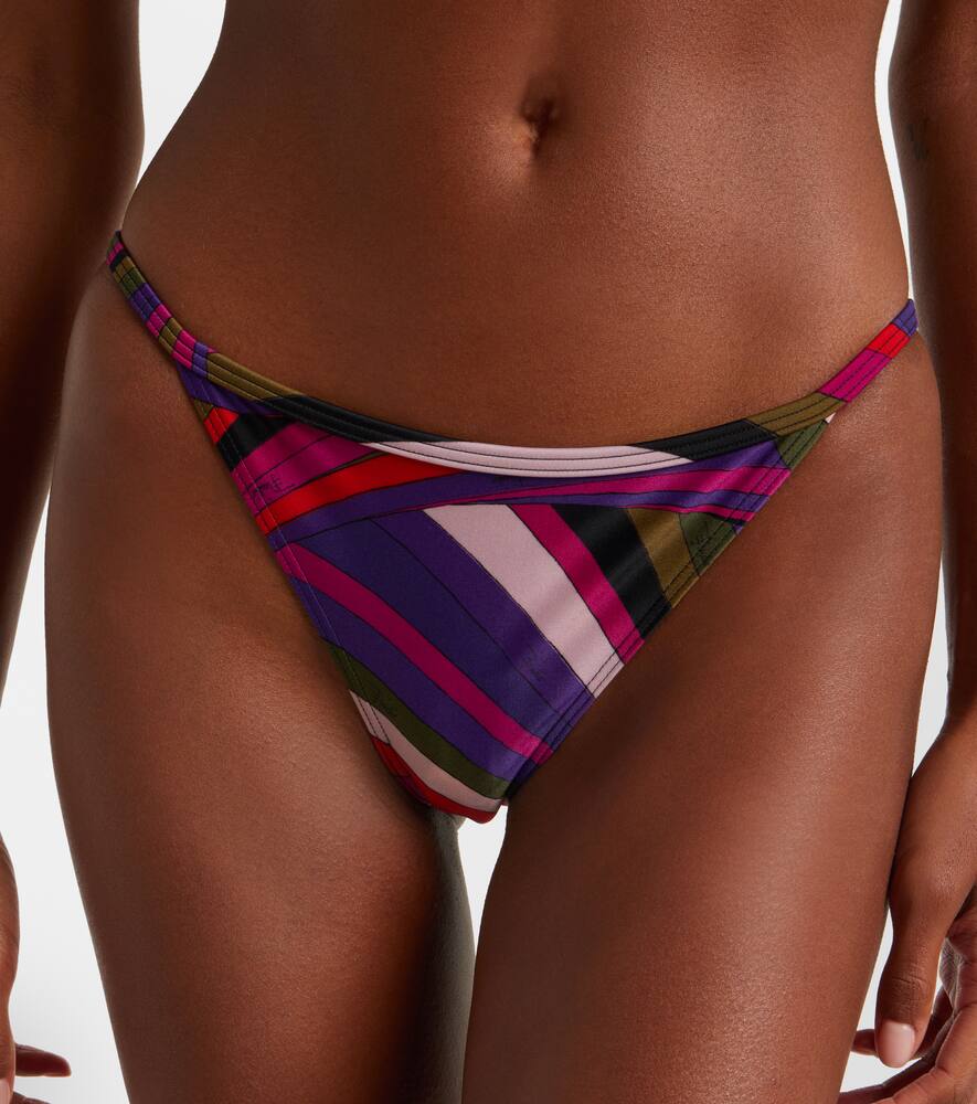 Модели Pucci известны своими яркими цветами и жизнерадостным настроением. Изделия выполнены из мягких, струящихся и немнущихся тканей. Эти плавки-бикини, изготовленные в Италии, украшены культовым принтом бренда Iride.