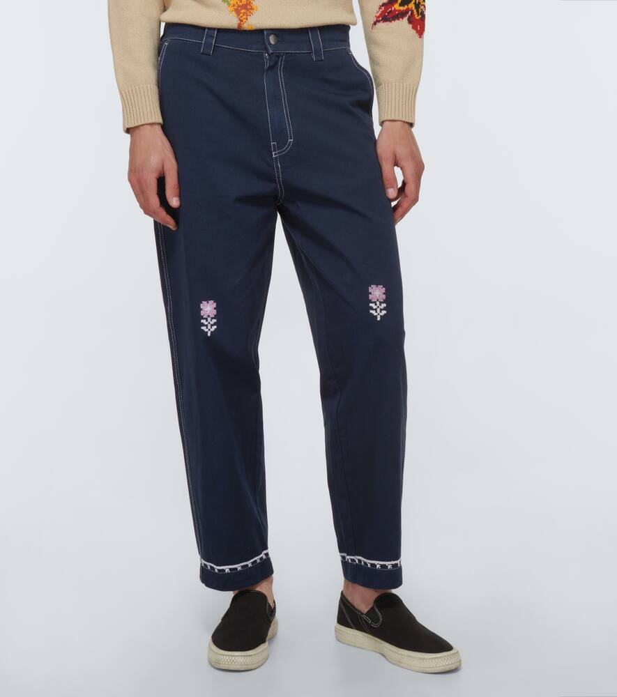 Эти брюки-чиносы от Adish с нежной цветочной вышивкой изготовлены из чистого хлопкового денима и имеют прямые штанины.