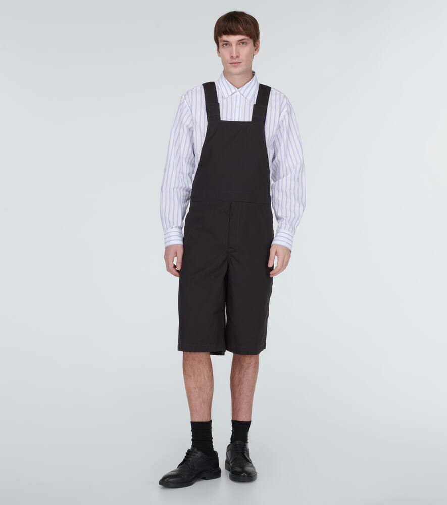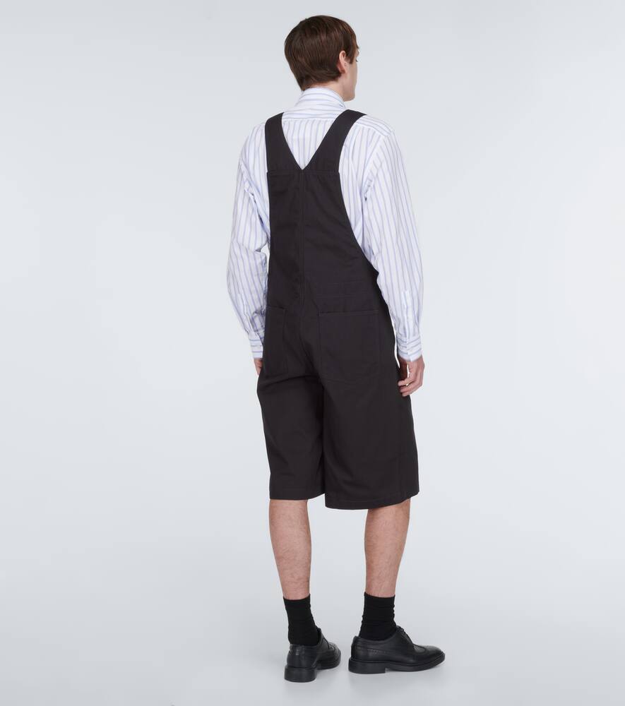Ощутите возрождение популярности комбинезонов с этой стильной рубашкой от Comme des Garçons. Изготовленная из прочного твила темно-синего цвета, она имеет бермудский крой, боковые карманы и регулируемые лямки.