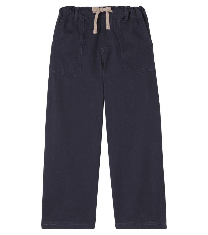 Уит создаёт повседневную одежду для детей, которые хотят уверенно познавать мир. Брюки James сшиты из синего хлопкового трикотажа и имеют широкий крой.