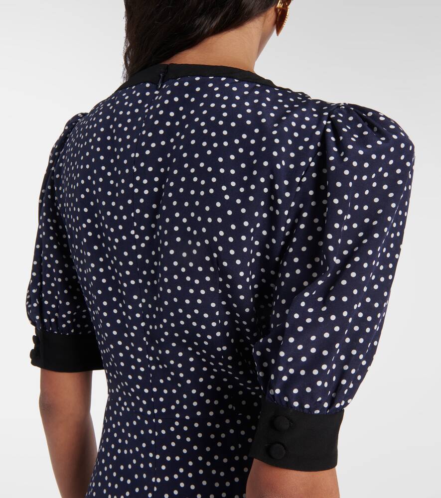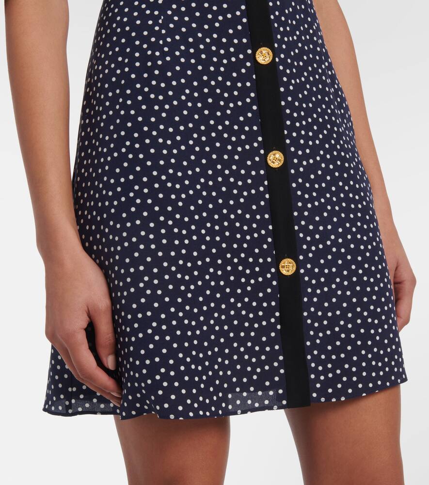Шелковое мини-платье в горошек Alessandra Rich, Navy Blue-White