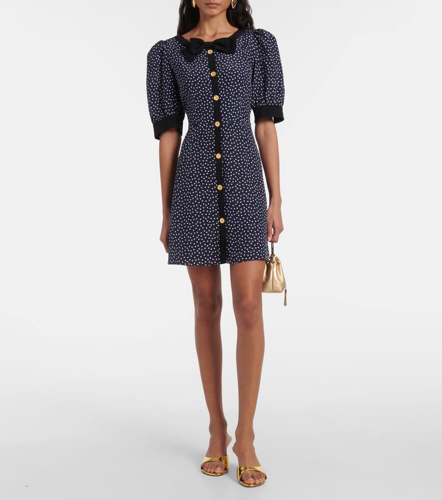 Шелковое мини-платье в горошек Alessandra Rich, Navy Blue-White 131 710₽