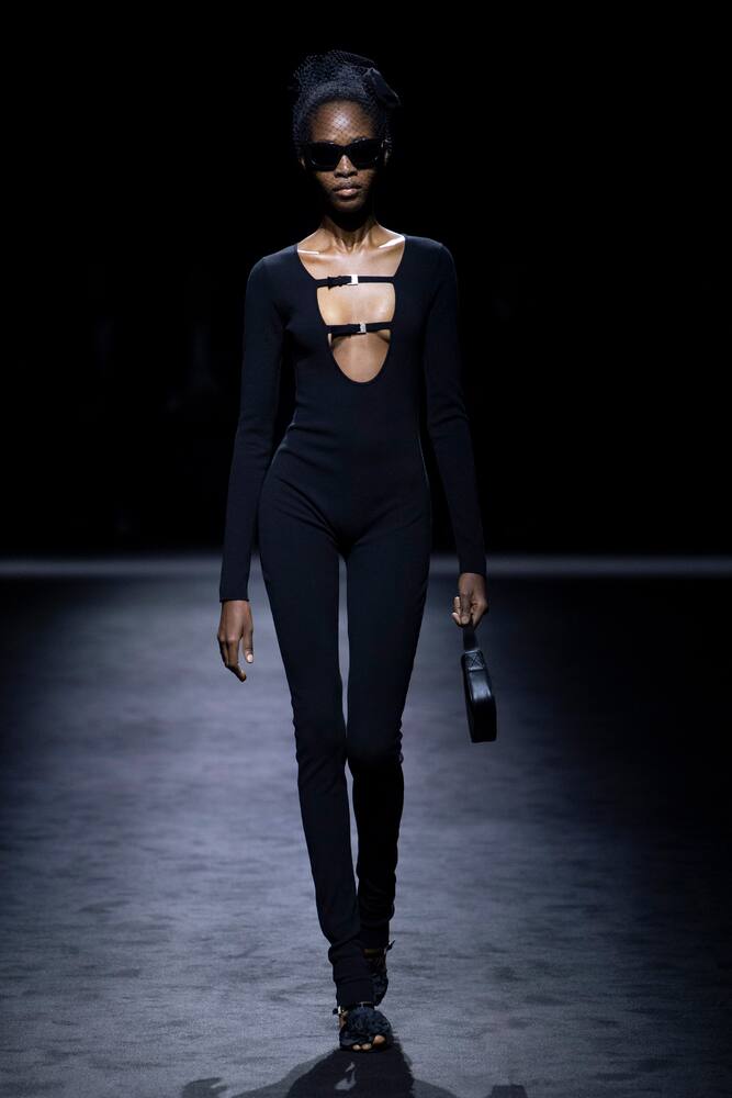Сразу после показа на подиуме креповый комбинезон Jessie от Bluemarine задаёт тон брендам. Гламурный и универсальный, он отличается глубоким V-образным вырезом, украшенным пряжками с кристаллами, и приталенным силуэтом.