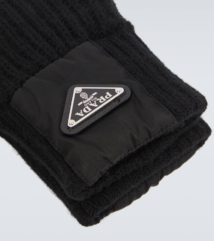 Ребристые вязаные перчатки из шерсти и кашемира Prada, Nero