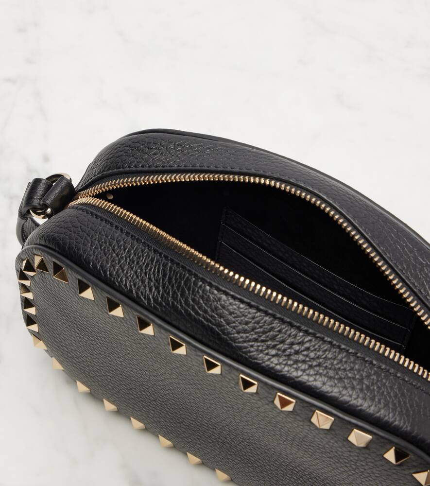 Валентино Гаравани вдохновился античной архитектурой, создав ставшие культовыми украшения Rockstud. Эта маленькая сумка через плечо с фирменными деталями искусно изготовлена из зернистой телячьей кожи и оснащена отделениями для карт в основном отделении.