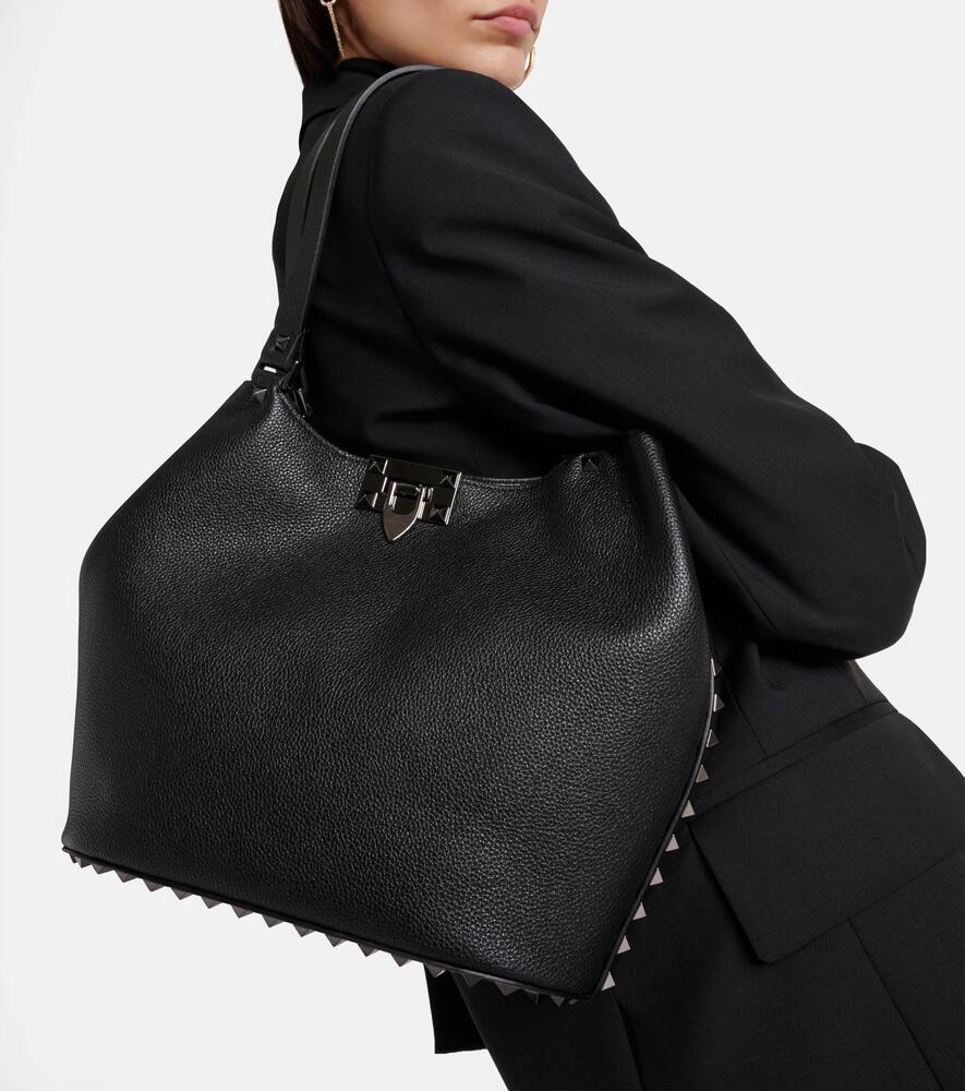 Кожаная сумка-тоут Rockstud Small Valentino Garavani, Nero