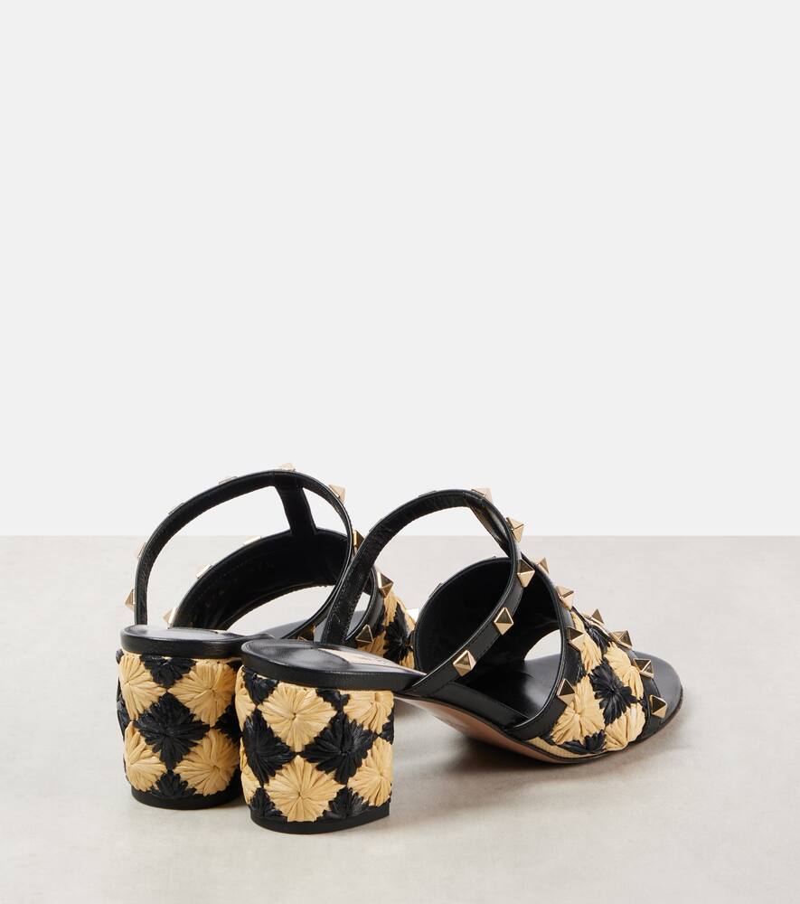 Rockstud 60 мюли с эффектом рафии Valentino Garavani, Nero/Naturale/Nero