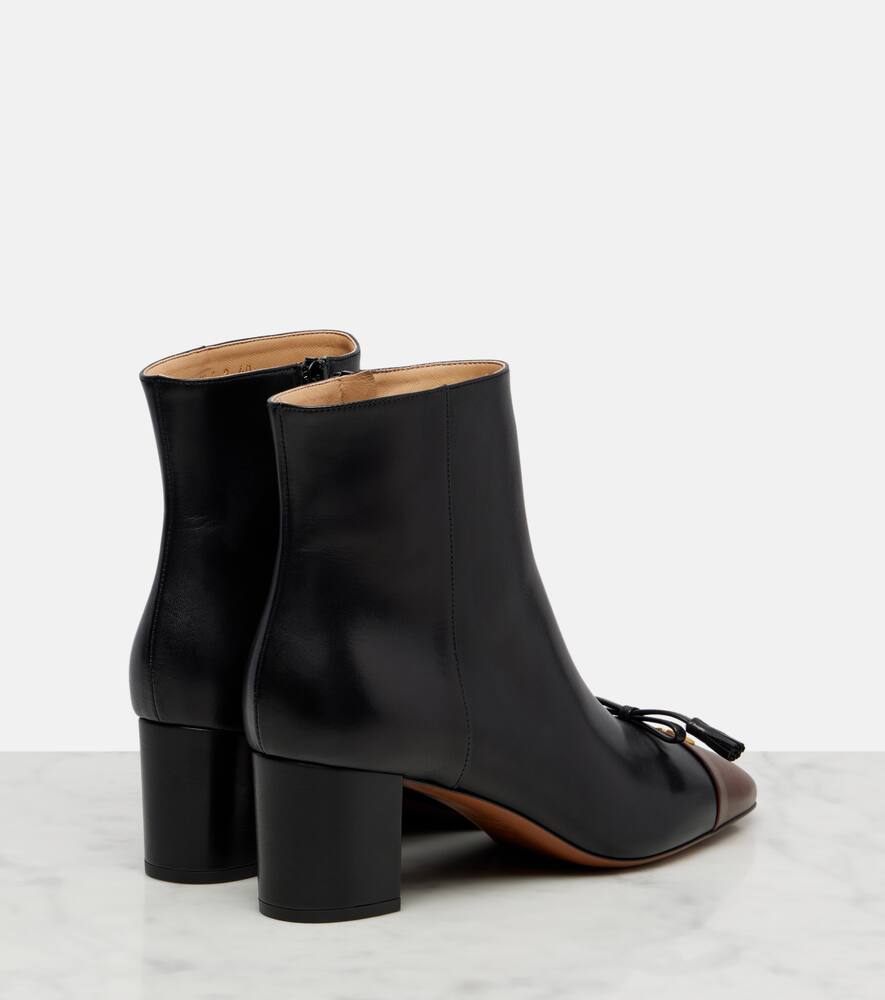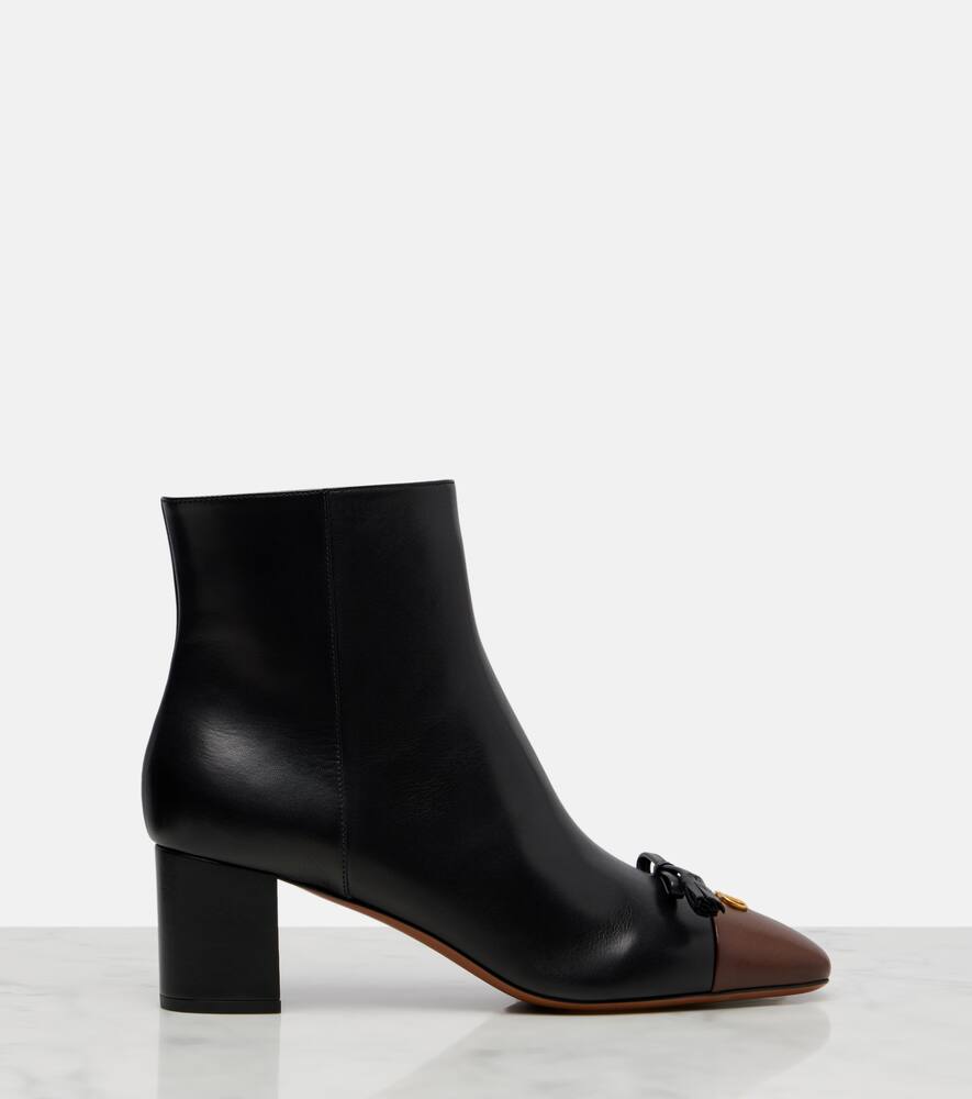 Ботильоны Valet du Roi от Valentino Garavani, изготовленные в Италии из кожи, отличаются изысканной золотистой надписью VLogo, бантом с кисточками, застёжкой-молнией сбоку и контрастным миндалевидным носком.