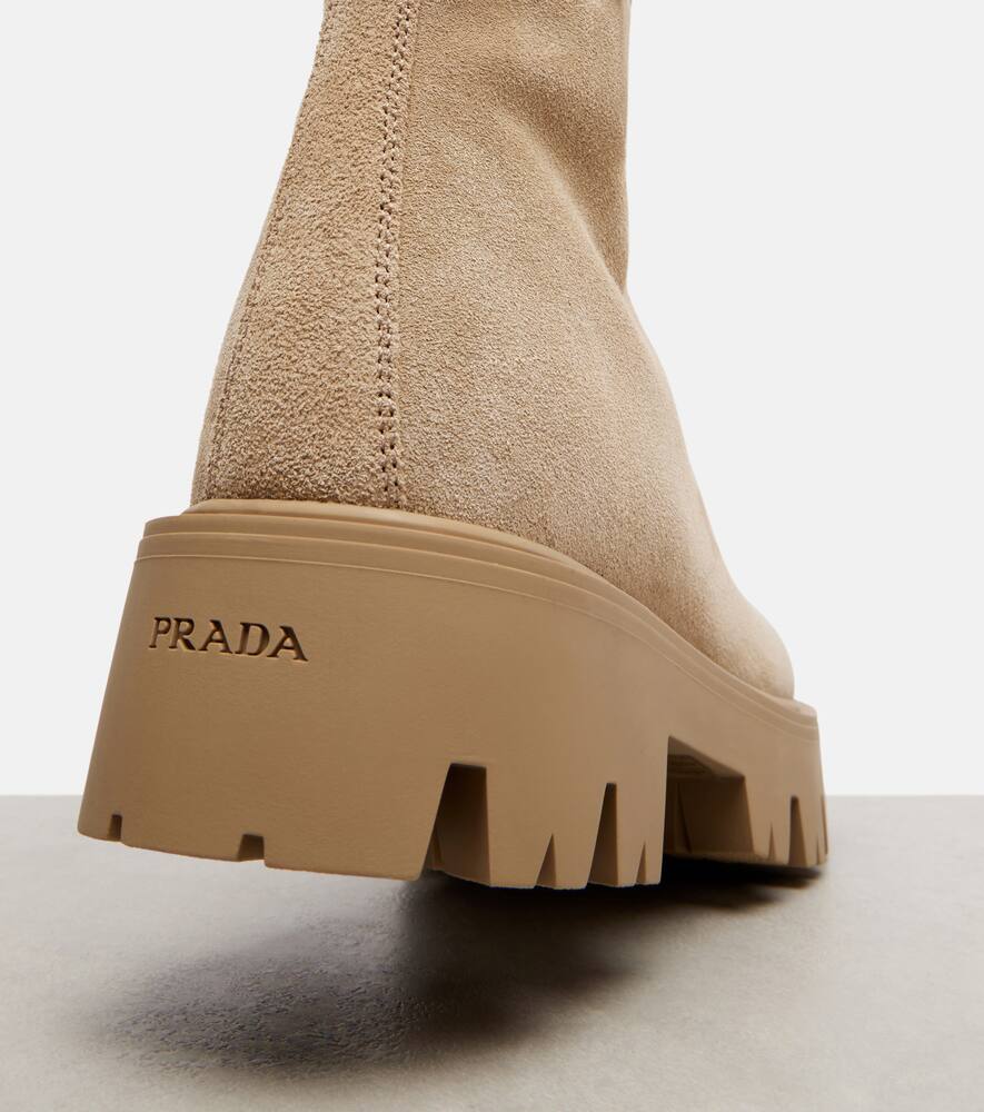 Замшевые ботинки на платформе Prada, Neutral 151 060₽
