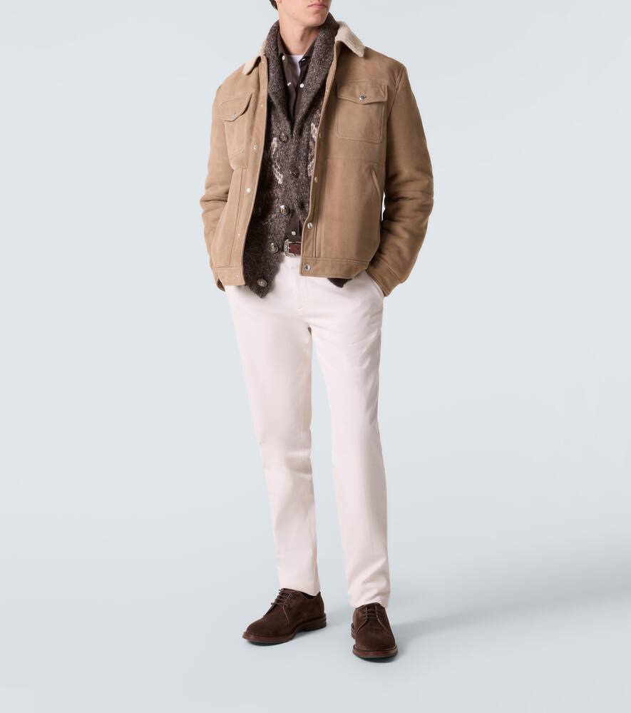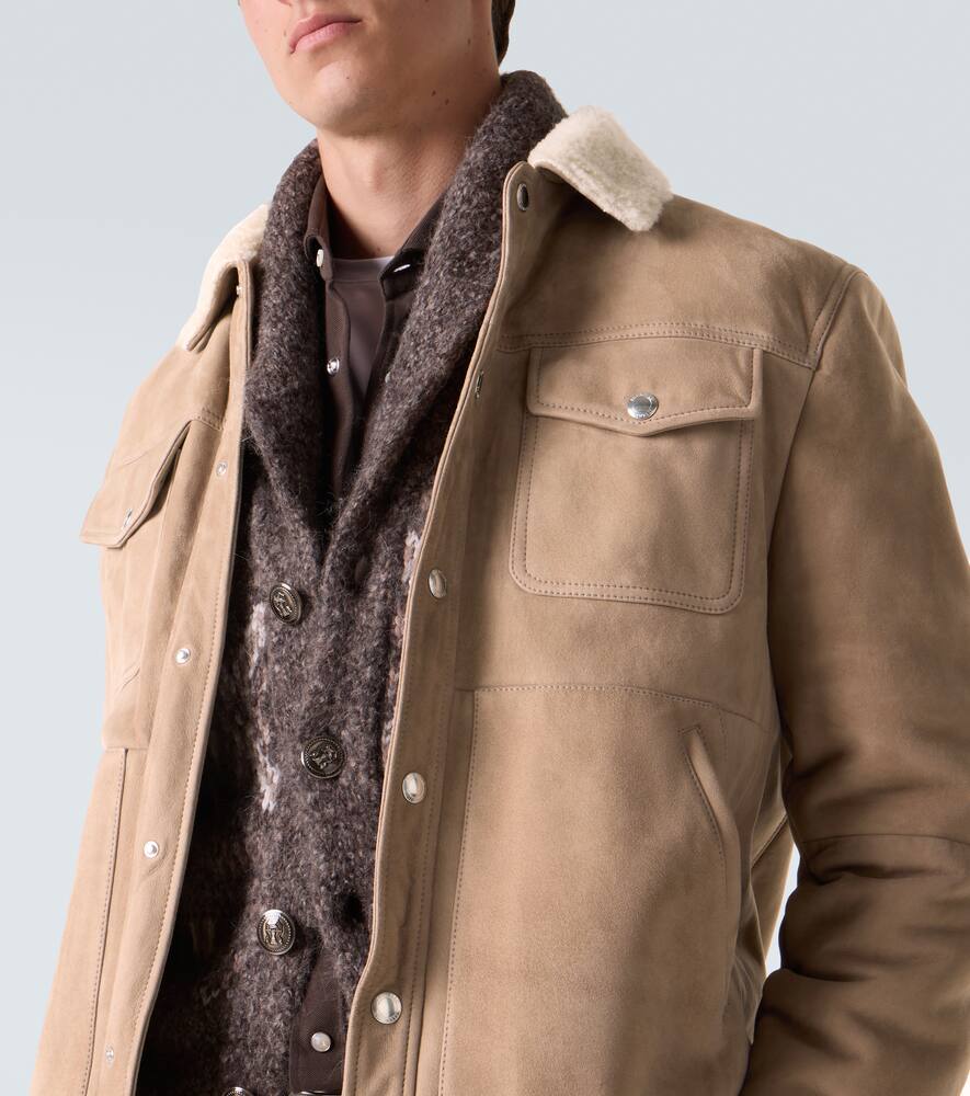 Модели Brunello Cucinelli рождаются в Соломео, средневековой деревушке, где искусство и традиции вплетены в каждую нить дома. Эта элегантная замшевая куртка с подкладкой из овчины представлена в красивом теплом коричневом цвете, который мгновенно преобразит любой образ.