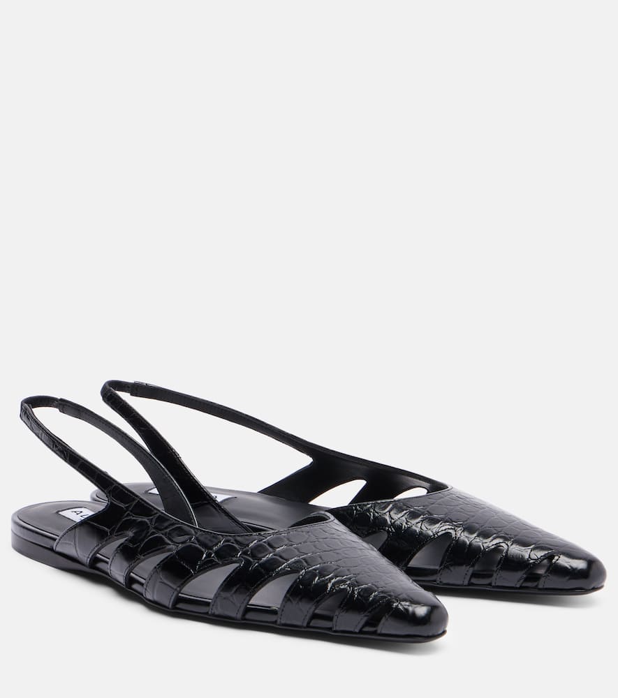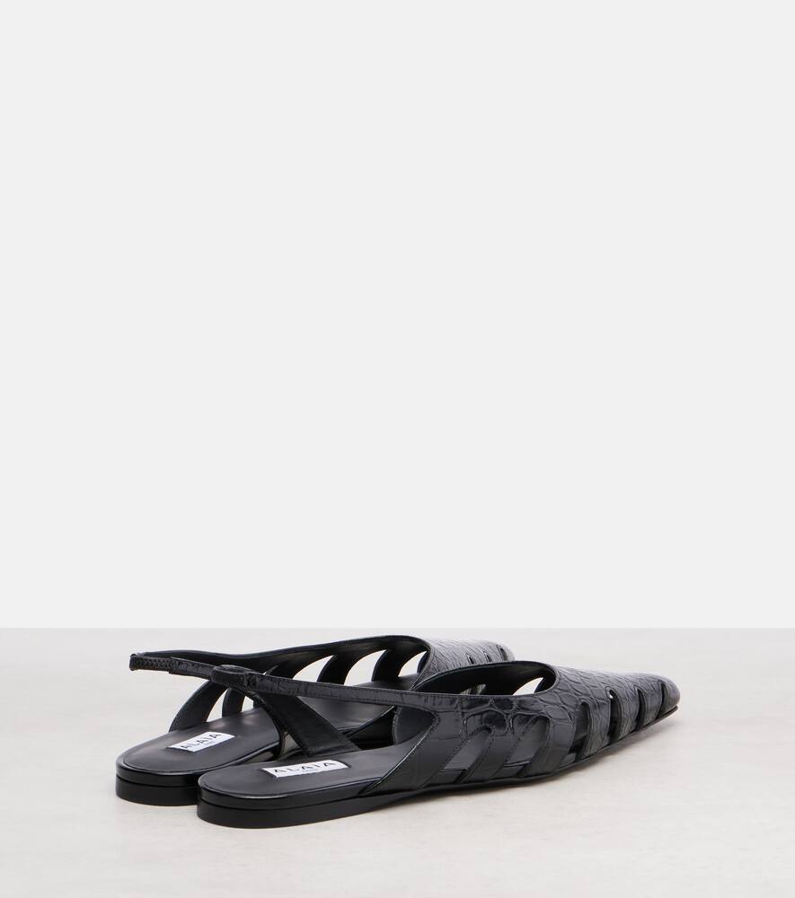 Кожаные балетки-слингбэки с эффектом крокодила Alaïa, Noir