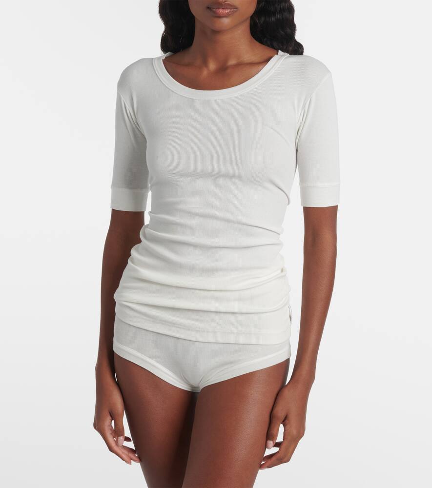 Хлопковый топ с ребристым узором Calvin Klein Collection, Off White